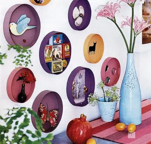 Например, берем коробки от конфет или печенья, обклеиваем цветной бумагой или остатками обоев из кладовой. Внутри можно поместить практически все что будет декорировать вашему помещению.