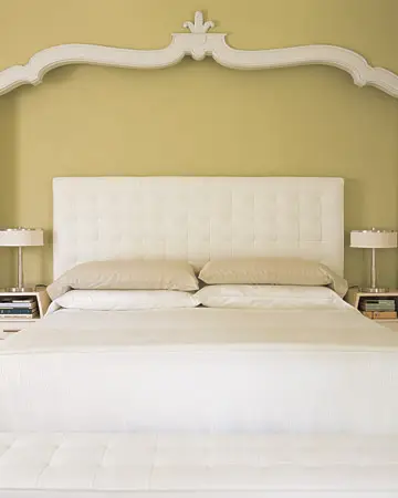 Все цвета прекрасно сочетаются с белым. Попробуйте использовать такое сочетание для своей спальни. На гладкую стену цвета молодой зелени в изголовье вашей кровати прикрепите богатое лепное украшение, выделив его белой краской.