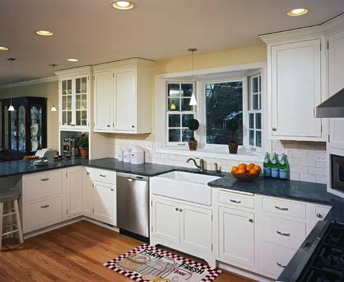 Если эркер небольшой, вы можете, например, разместить там рабочую зону кухни: