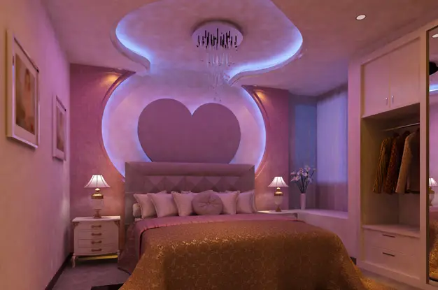 Дизайн спальни небольших размеров своими руками. Дизайн спальни вполне можно осилить самостоятельно, как для обычной квартиры, так и для частного дома. Фотография вверху показывает конечный результат оформительской работы из гипсокартона. Остальные элементы представлены обычным спальным гарнитуром. Дополнительные панели и подсветка не должны представлять большой проблемы при самостоятельной работе, хотя некоторую часть можно поручить и профессионалам.