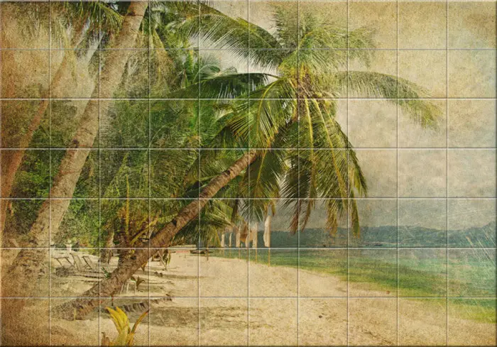 Дизайн ванной комнаты с пальмами (декоративная плитка)