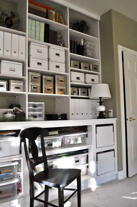 То, что ваша рабочая зона вмешается на паре квадратных метров, в условиях малогабаритного жилья − огромный плюс, а с другой стороны − самый большой её недостаток. Из-за нехватки места работать здесь может быть непривычно и неудобно. Не всем нравится в буквальном смысле загонять себя в шкаф. Потому, если ширина прохода позволяет, организуйте открытую рабочую зону, поставьте модный письменный стол, навесьте несколько полок на стены − и готово!