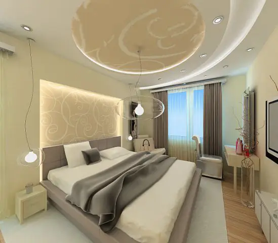 Дизайн потолка должен соответствовать общему стилю спальни, вписываться в ее интерьер и поддерживать ее атмосферу.
