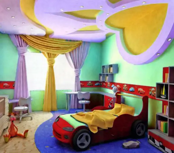 Перед тем как начинать покупать вещи в комнату или делать ремонт, тщательно продумайте все до мелочей. Поможет нарисованная схема детской комнаты с учетом всех размеров. Вы должны учесть, что дети быстро растут, и поэтому нужно все-таки думать о том, что через 2 года кровать понадобится больше и шире нынешней. И что полочку под игрушки придется отдать под учебники. Все это учитывайте, продумывая план. Создать комнату, которая подойдет и малышу и ученику помогут определенные цвета потолка и стен. И в дальнейшем перепланировка детской комнаты обойдется лишь заменой мелочей в декоре (штор, рамок, ковров). На фото вы видите примеры правильной планировки.