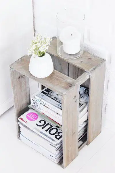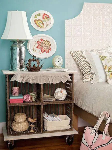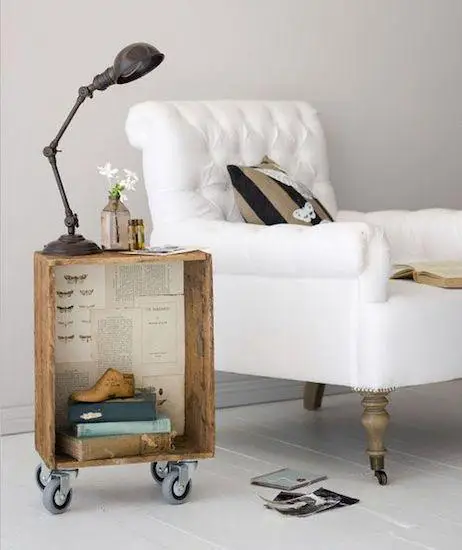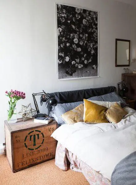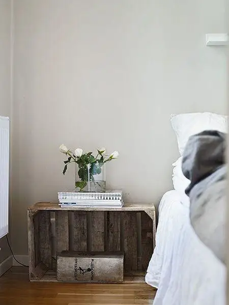 Деревянный промышленный ящик в качестве прикроватной тумбочки, без сомнения, станет эффектным элементом декора спальни. Более того, этот самобытный предмет интерьера прекрасно впишется практически в любой интерьер. Существует множество вариантов облагородить ящик, но важно не переусердствовать и сохранить его особый первозданный вид.