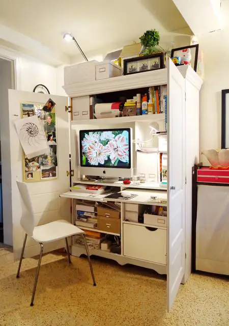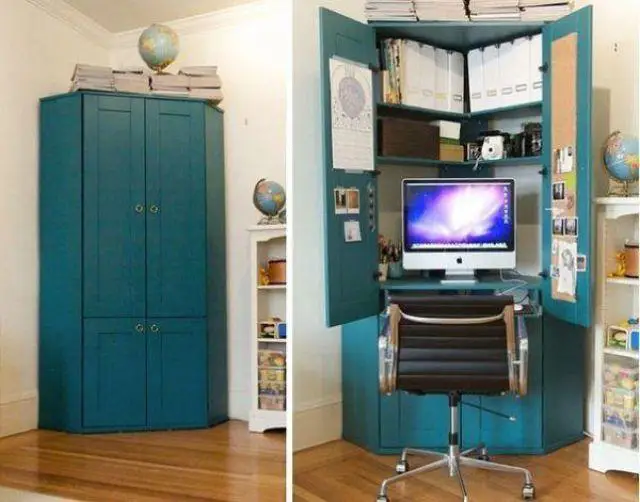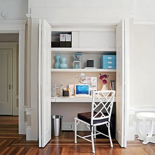 Во многих старых домах предусмотрено место под кладовку или встроенный шкаф, которое можно легко превратить в домашний офис. Ниши и архитектурные особенности комнат также подойдут для этих целей. Стол, полки и правильное освещение – вот все, что нужно для комфортного рабочего места, а закончив работу, можно просто закрыть дверь.