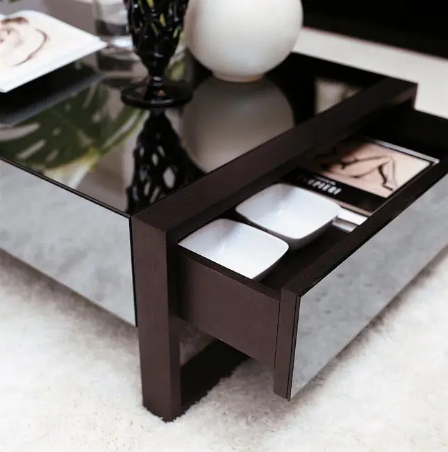 Добавить функциональности кофейному или журнальному столику можно за счет дополнительного ящика. В этом скрытом месте для хранения прекрасно разместятся книги, журналы, настольные игры и разные мелочи.