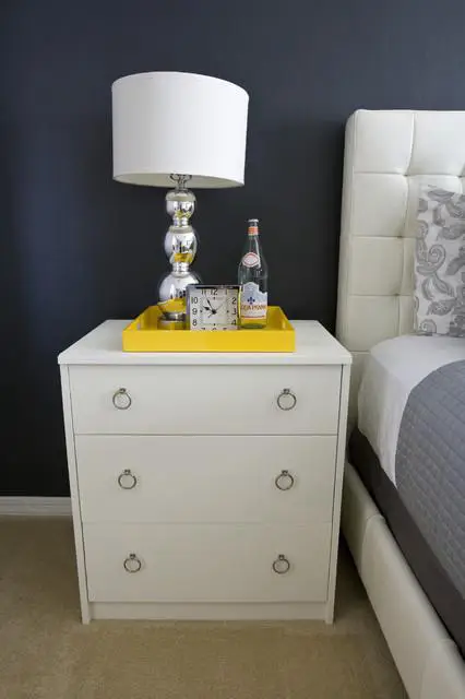 Прикроватные тумбы не очень функциональны, особенно когда пространство ограничено. Вместо них можно использовать гораздо более полезный комод, в ящиках которого поместятся нижнее белье или разные аксессуары, а на поверхности – лампа и необходимые мелочи.