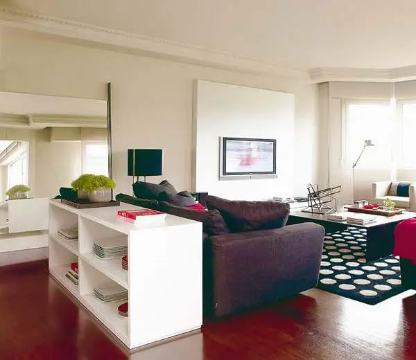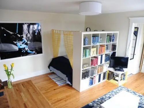 Хозяева съемных квартир редко разрешают выбрасывать их мебель, но вот против перестановки они вряд ли будут возражать. Попробуйте зонировать пространство, перемещая различные предметы мебели, чтобы получить дополнительные преимущества. Например, если разделить комнату диваном, за его спинкой можно разместить комод, низкий стеллаж или консольный столик.