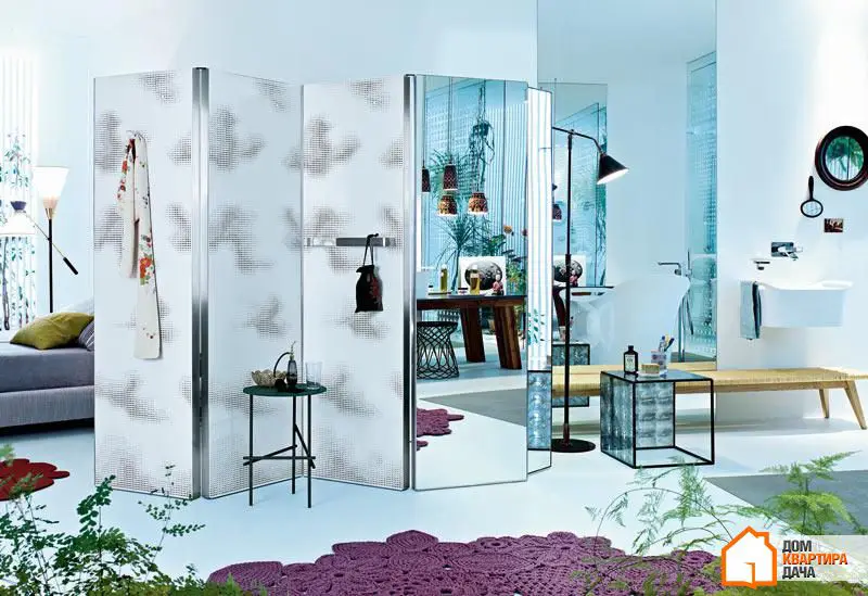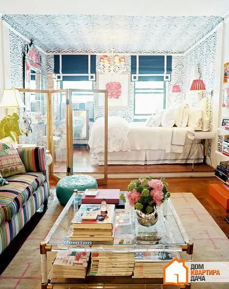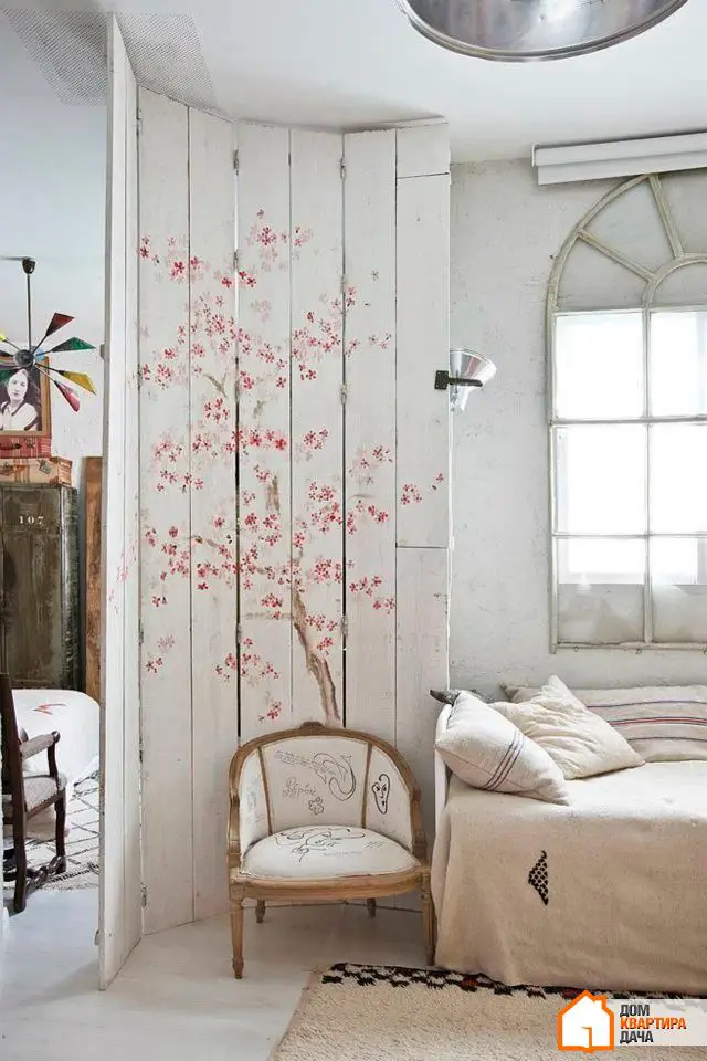 Удобный способ зонировать пространство по необходимости: ширмой можно огородить спальное место от посторонних глаз или сложить ее, чтобы преграда не мешала проникновению естественного света.