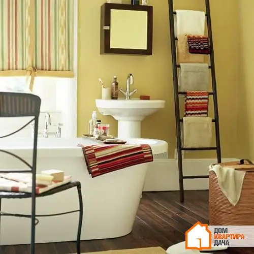 Использовать можно не только стены, но и пол: добавьте напольную вешалку с несколькими полками или узкий стеллаж, если площадь ванной комнаты это позволяет.