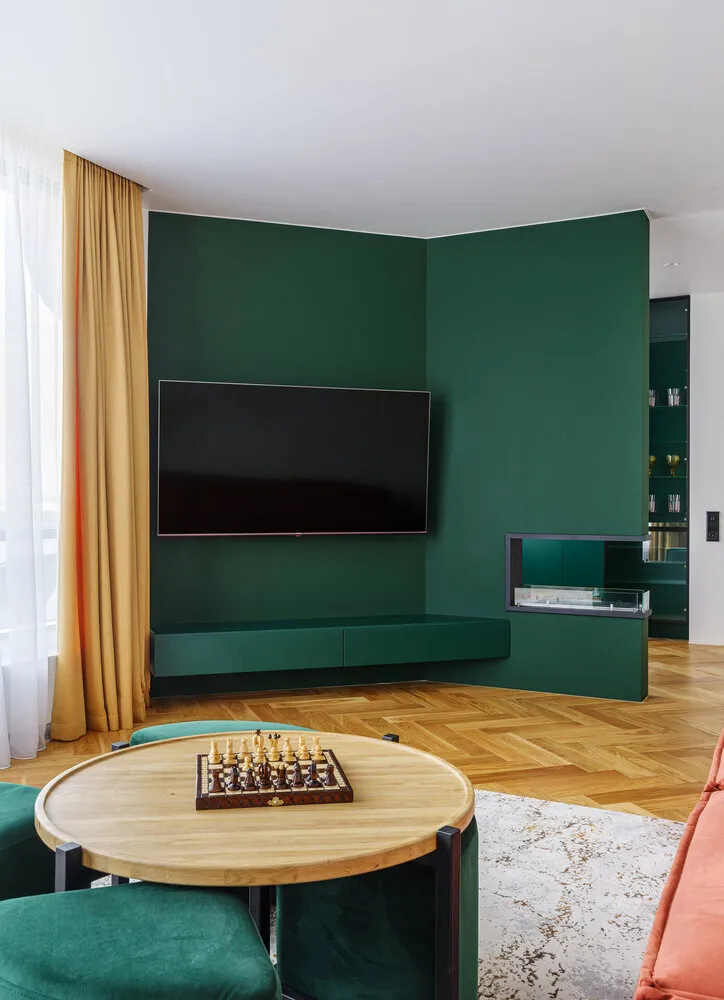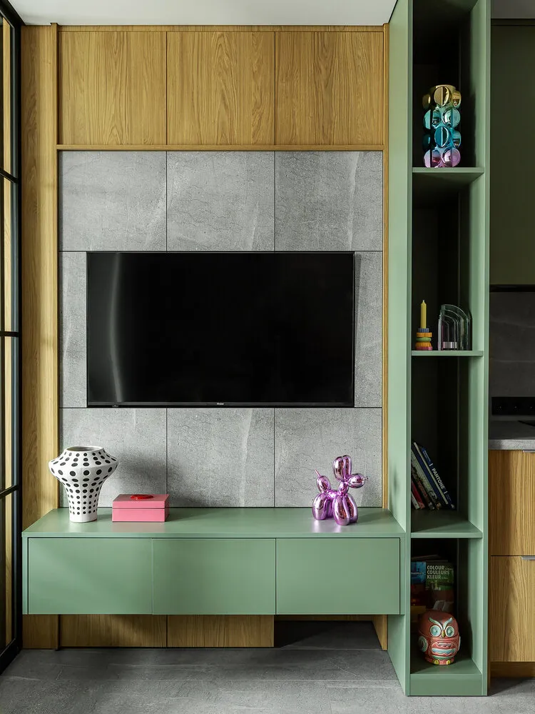 ТВ-зона может стать центром досуга для всей семьи, а не только местом для просмотра фильмов. Здесь можно установить игровую приставку, организовать пространство для настольных игр или даже петь караоке с друзьями. Подумайте, как объединить интересы всех: дети будут рады мультфильмам и интерактивным играм, взрослые — спортивным трансляциям или концертам.