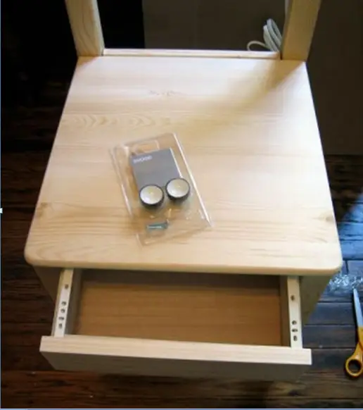 Для того, что бы проверить работоспособность ящика, вставьте его в стул. Ручку для ящика прикрутите с помощью шурупов и шуруповерта.