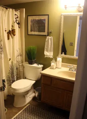 Иногда простое изменение оказывает большое влияние. Вам будет достаточно пары выходных дней, свежего добавления слоя краски и удаления возраста старой двери. Приобретите новые занавески для душа, бросьте ковер и некоторые потрясающие аксессуары. В результате получите обновленную ванную комнату, которая выглядит гораздо более стильно, чем та, которая была вначале.