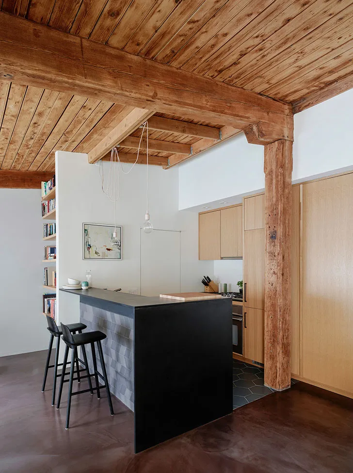 Пред нами классический лофт в здании бывшей фабрики в Нью-Йорке, который, тем не менее, имеет свою индивидуальность и яркий характер. Сам дом находится в одном из промышленных районов Брулина, который переживает новый этап реконструкции заброшенных заводов и фабрик. Архитекторы студии General Assembly постарались сохранить основные лофтовые элементы: деревянные балки и стены из красного кирпича. В то же время, планировка довольно необычная и оригинальная, чему, безусловно, обязана своем индустриальному прошлому. Классный проект!