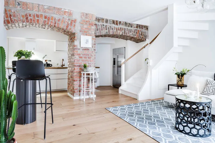 Квартира с кирпичной аркой и необычной планировкой в Гетеборге (75 кв. м)