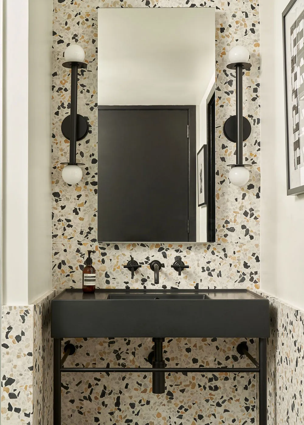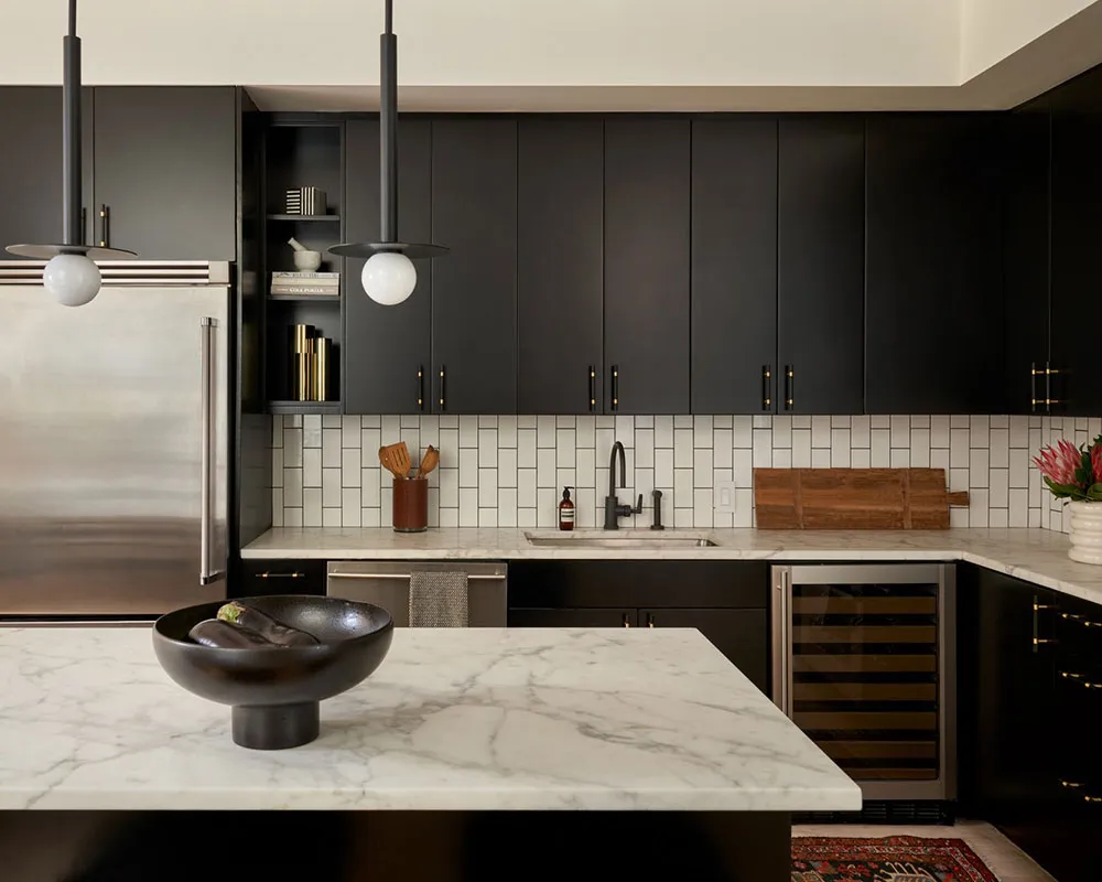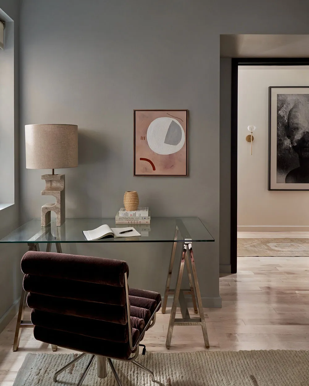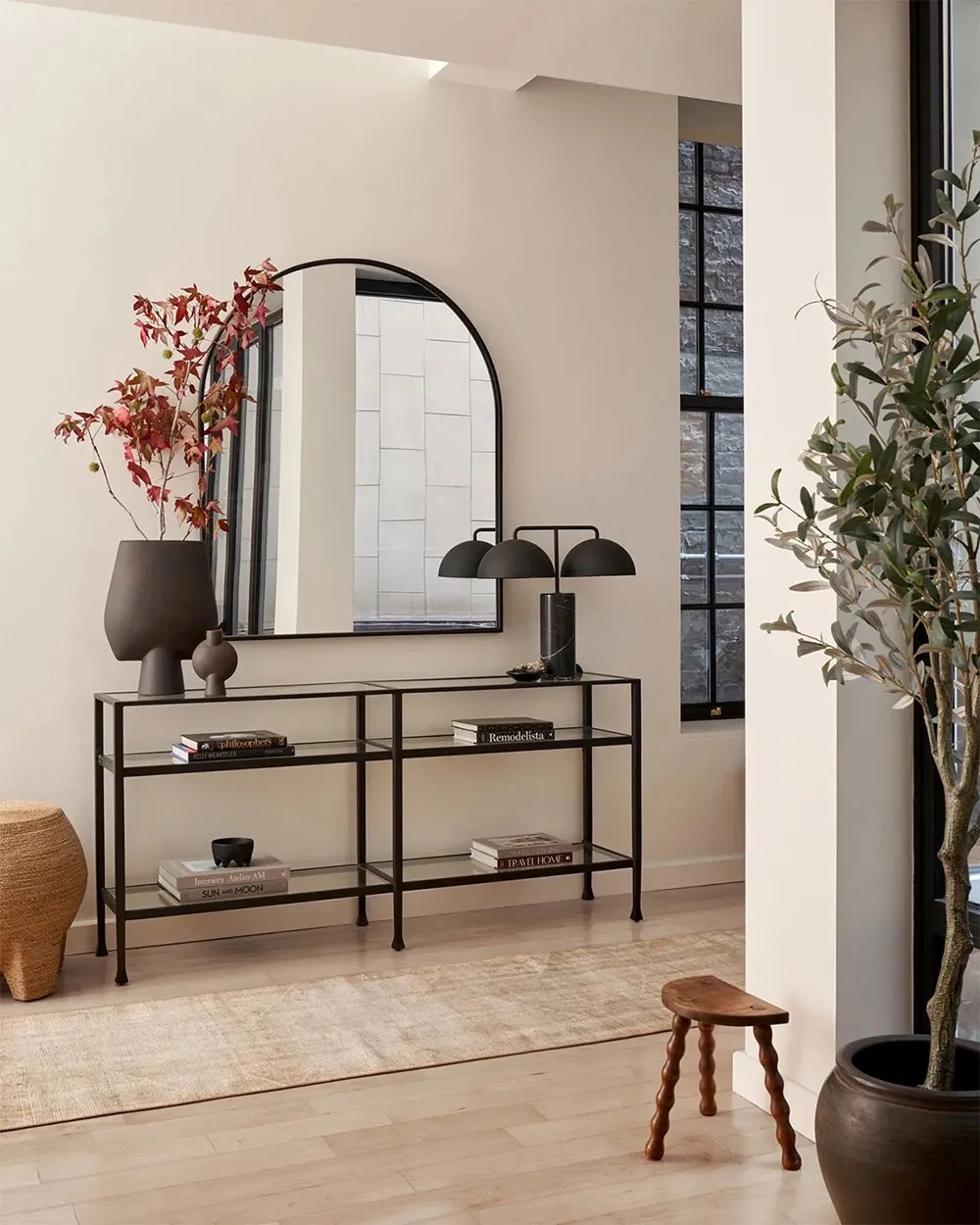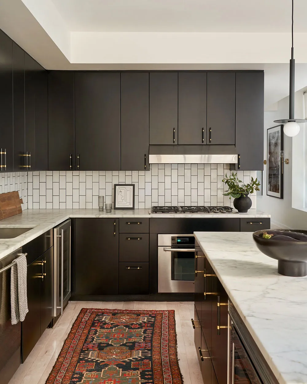 Тёплый современный интерьер в Нью-Йорке с черными деталями и утончённым декором