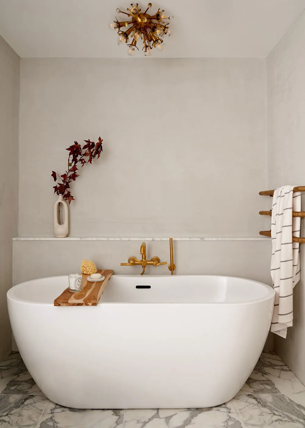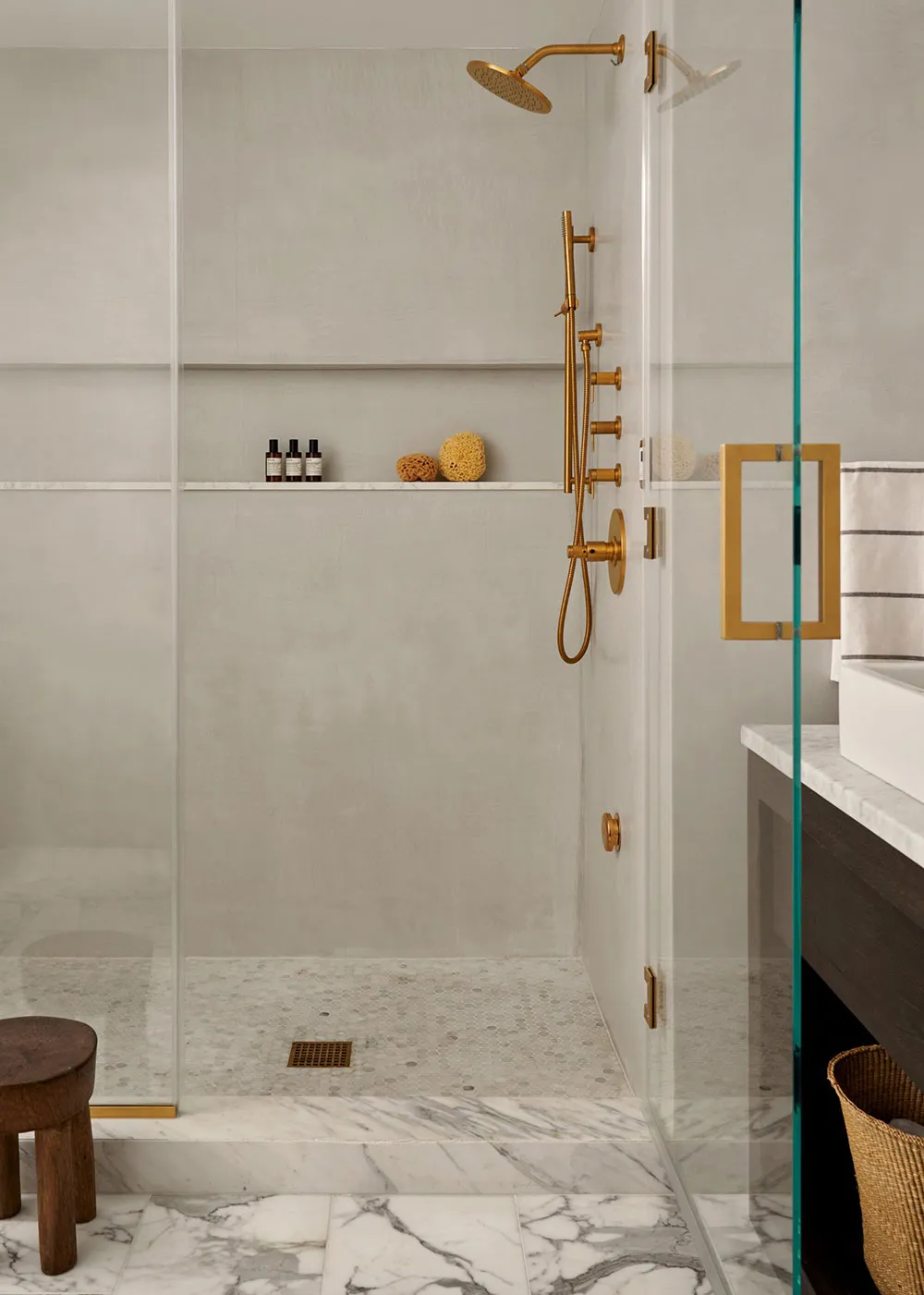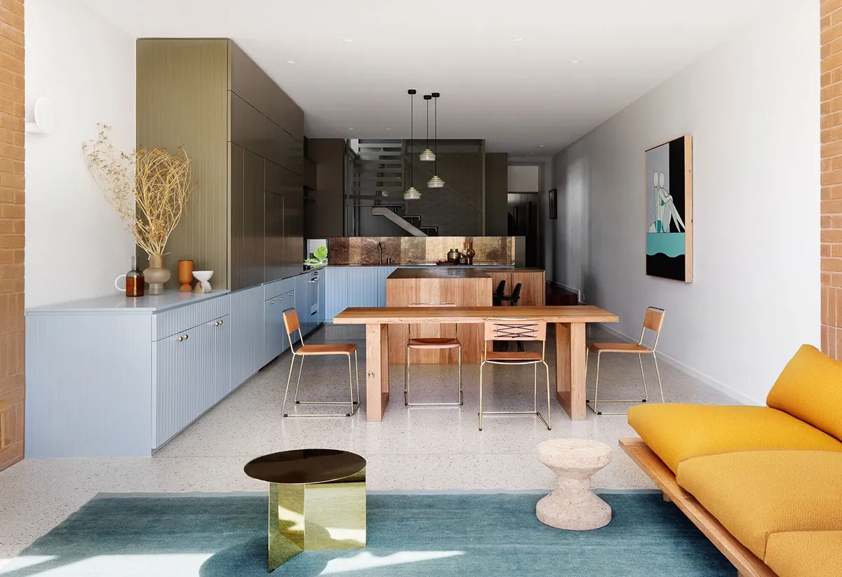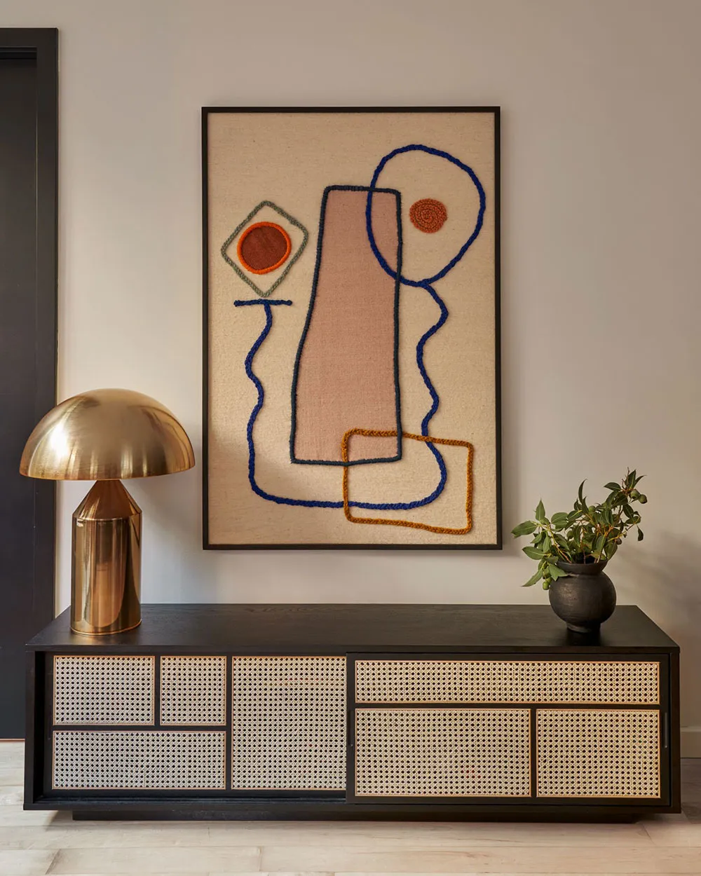 Тёплый современный интерьер в Нью-Йорке с черными деталями и утончённым декором