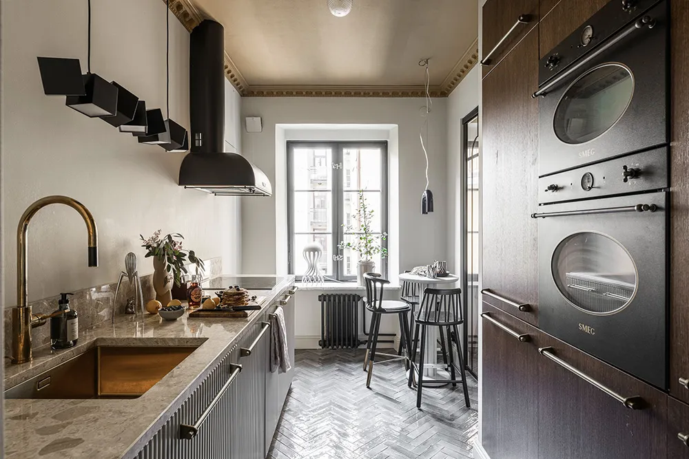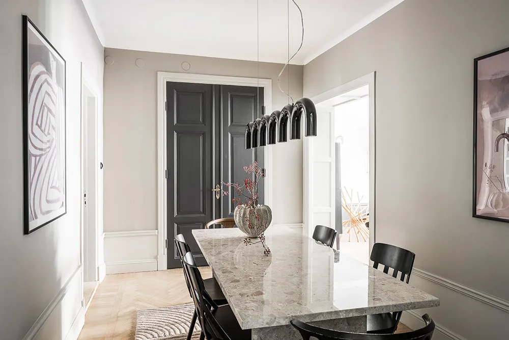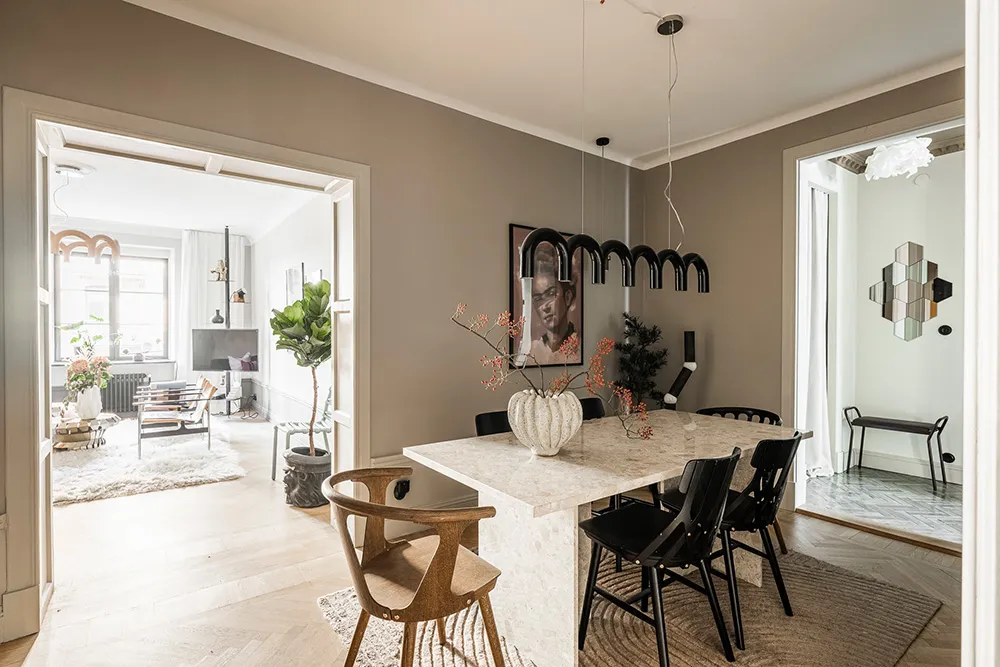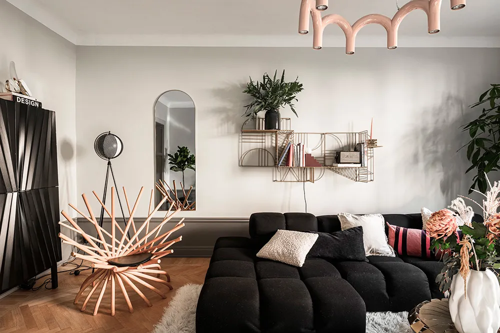 В этой шведской квартире на удивление много модных и популярных современных дизайнерских приёмов.