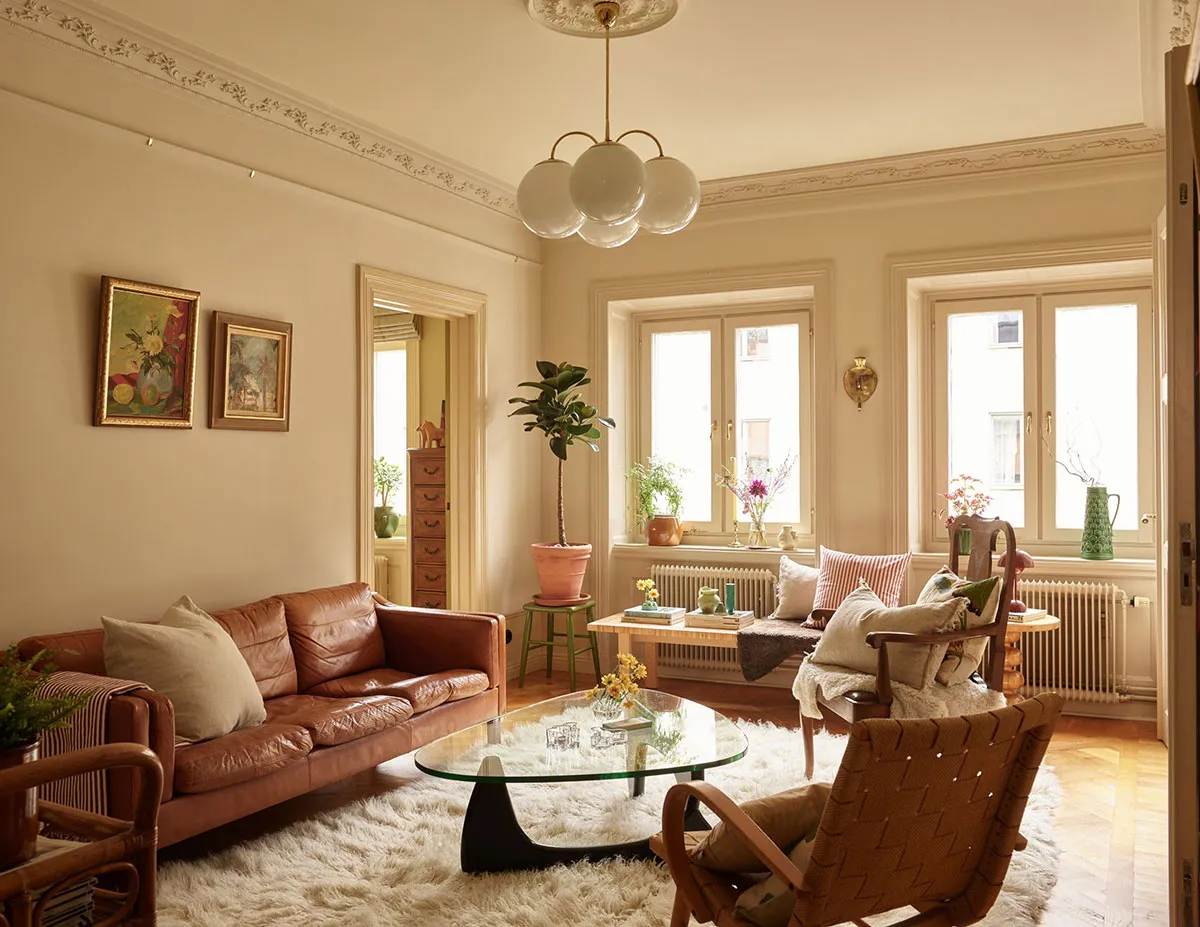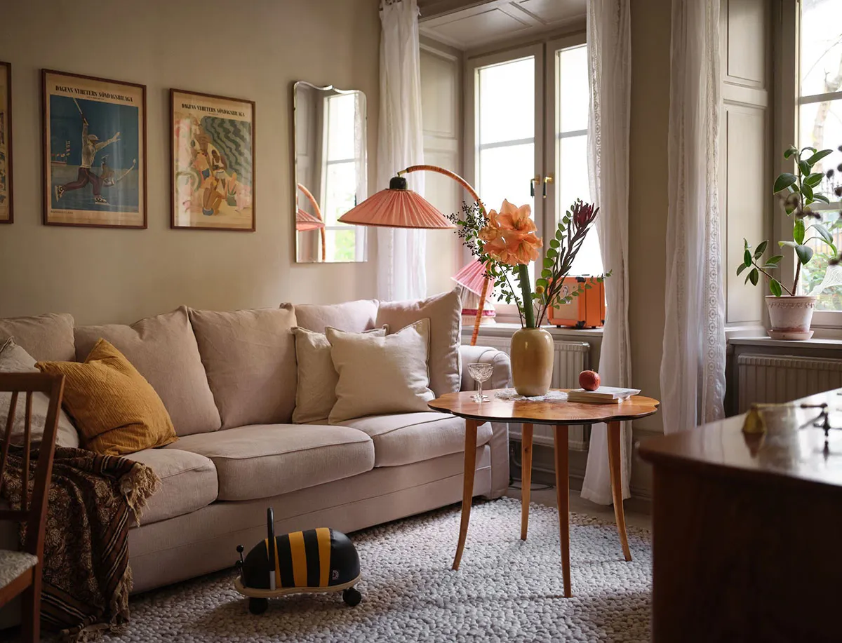 Тёплые летние оттенки и ботанические принты: необычная квартира в Стокгольме