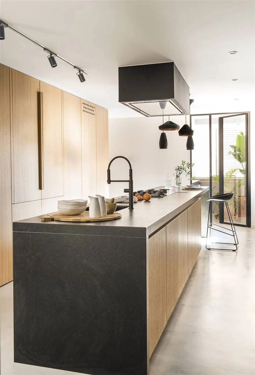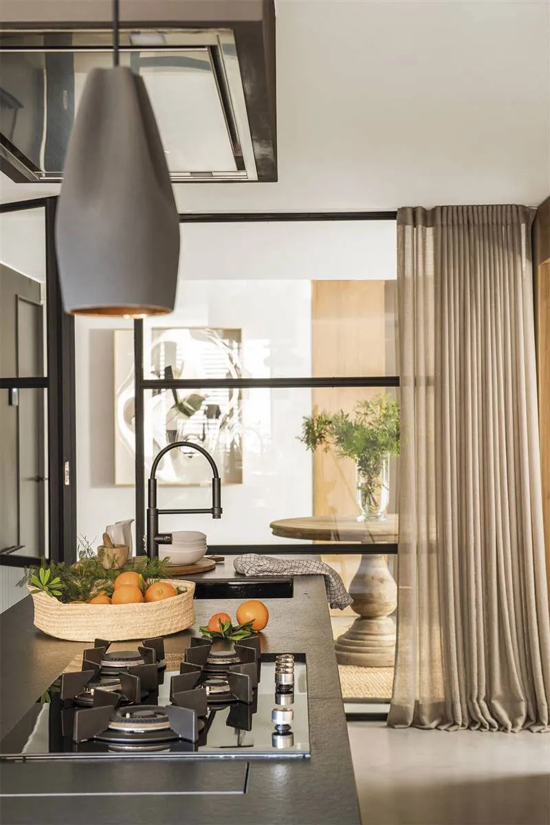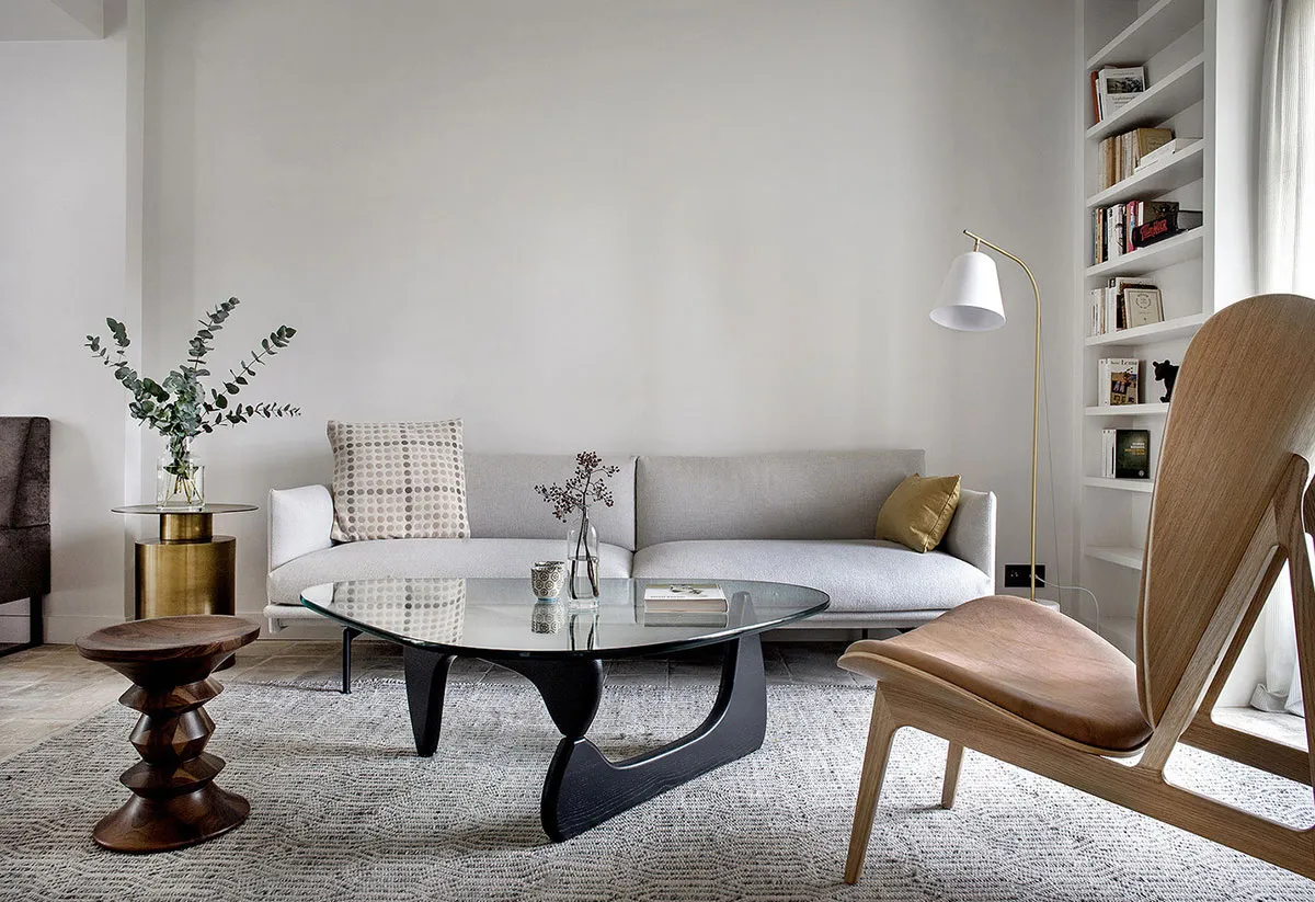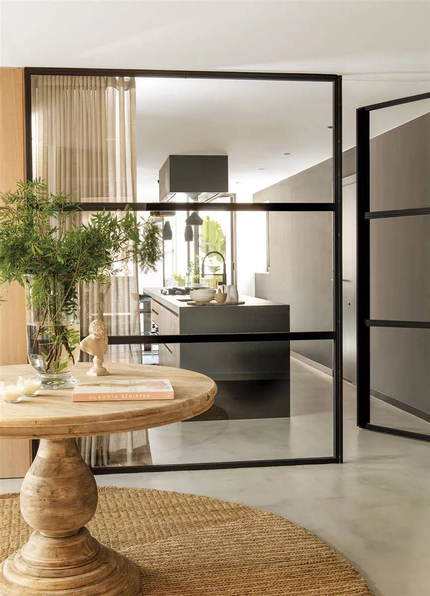 Эта квартира в Барселоне находится в современном жилом доме, отсюда и стеклянные стены, и правильная прямоугольная форма пространства.