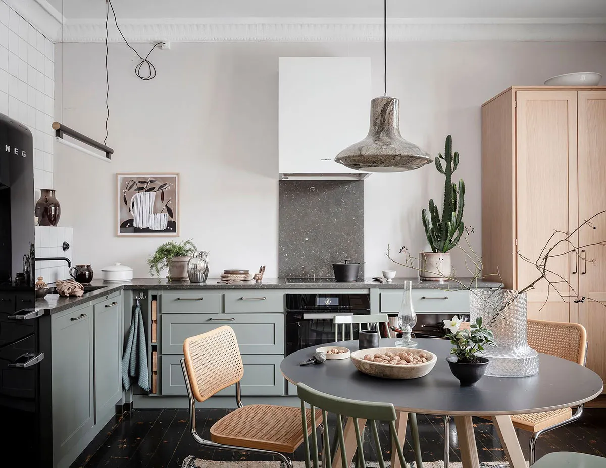 Черный пол на кухне и красивые окна: квартира в необычном доме 18 века в Гётеборге (71 кв. м)