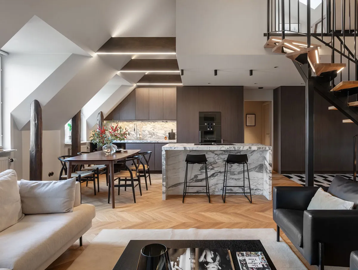 Элегантный современный дизайн мансардной квартиры в Стокгольме