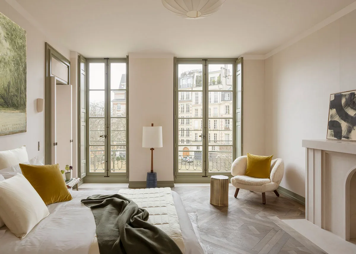 Элегантный интерьер коллекционера в Париже с оливковыми акцентами