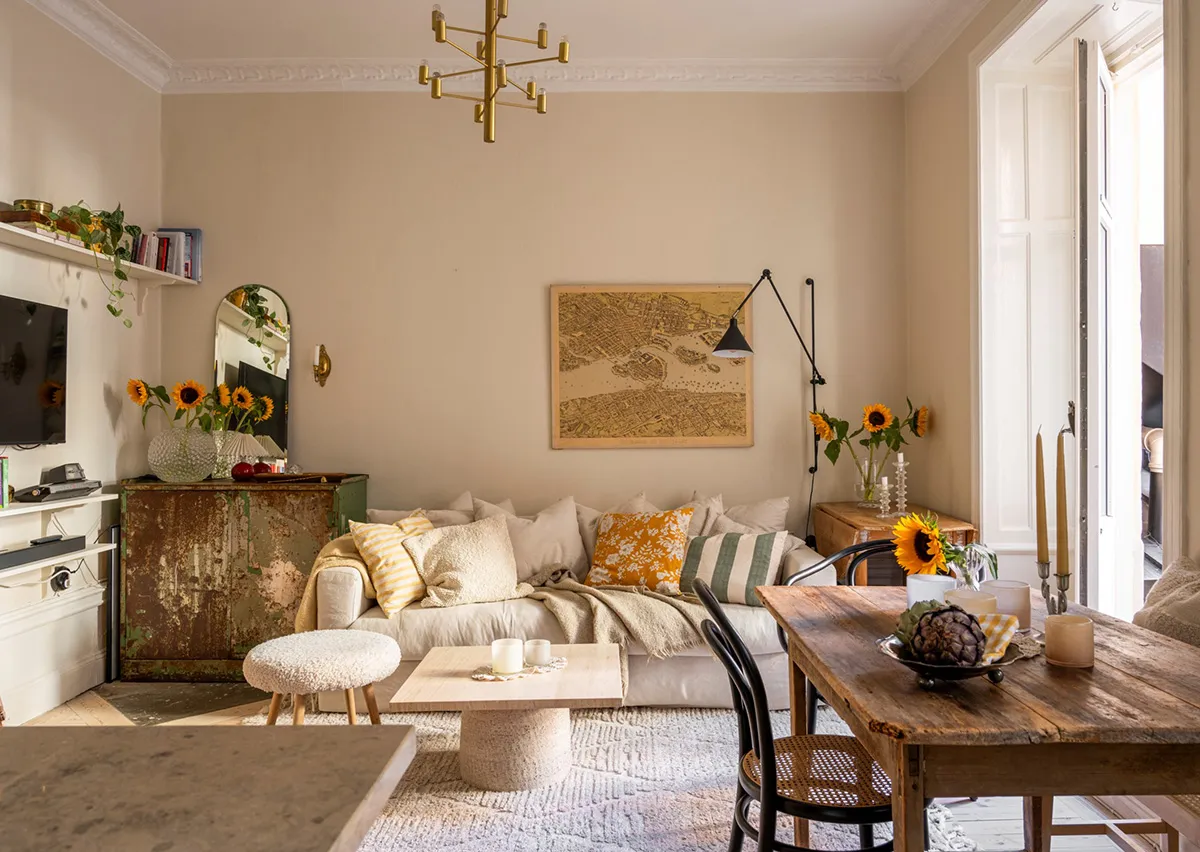 Винтажный декор небольшой квартиры на первом этаже в Швеции (44 кв. м)