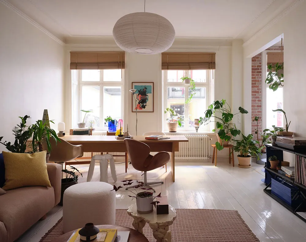 Причудливая мебель и офисный стол вместо обеденного: неожиданный интерьер в Стокгольме (49 кв. м)
