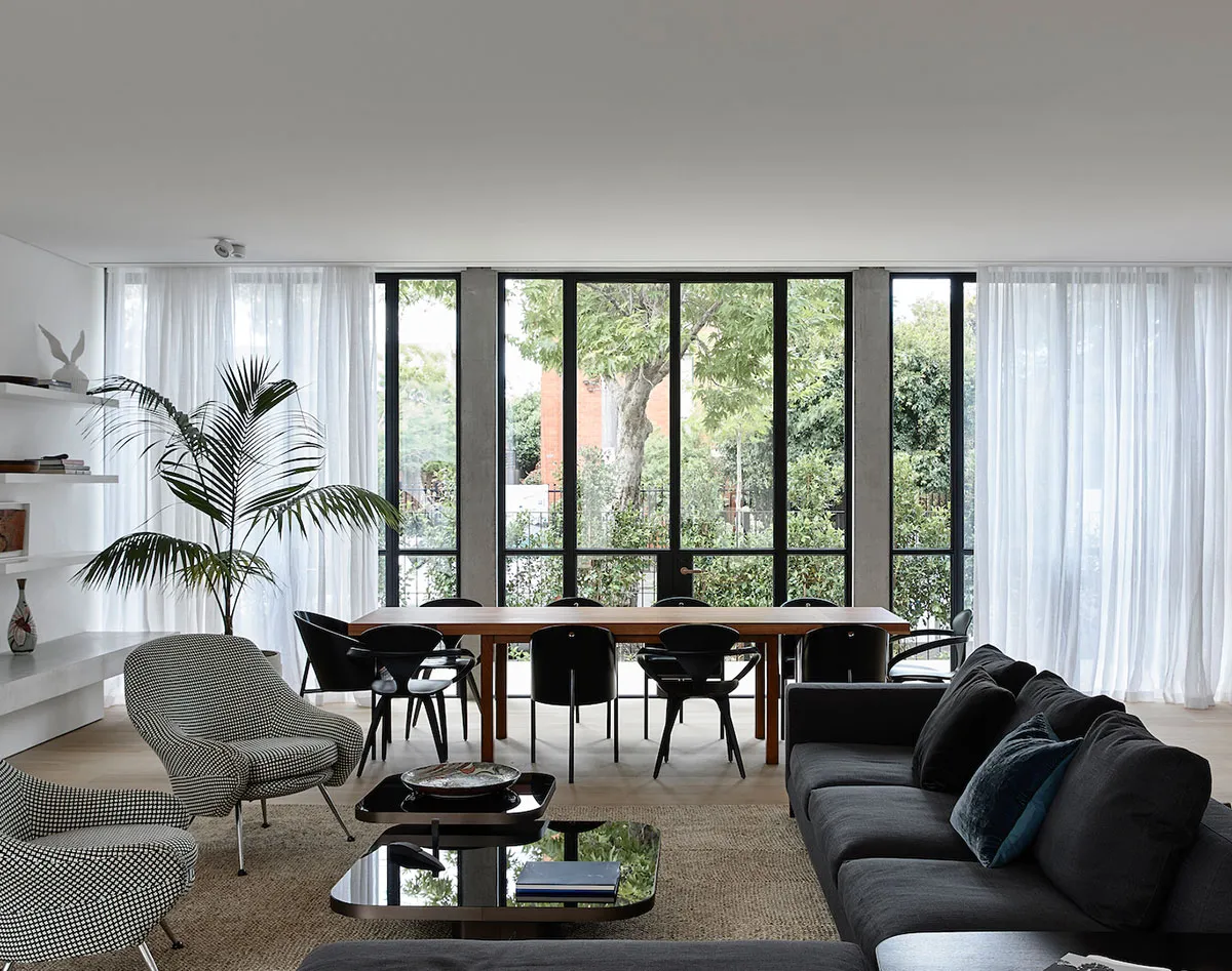 У этого дома в Мельбурне довольно типичный как для Австралии профайл: прекрасный исторический фасад прошлого века, просторная современная пристройка на заднем дворе со стеклянными стенами, модный минималистичный дизайн обновлённых интерьеров.