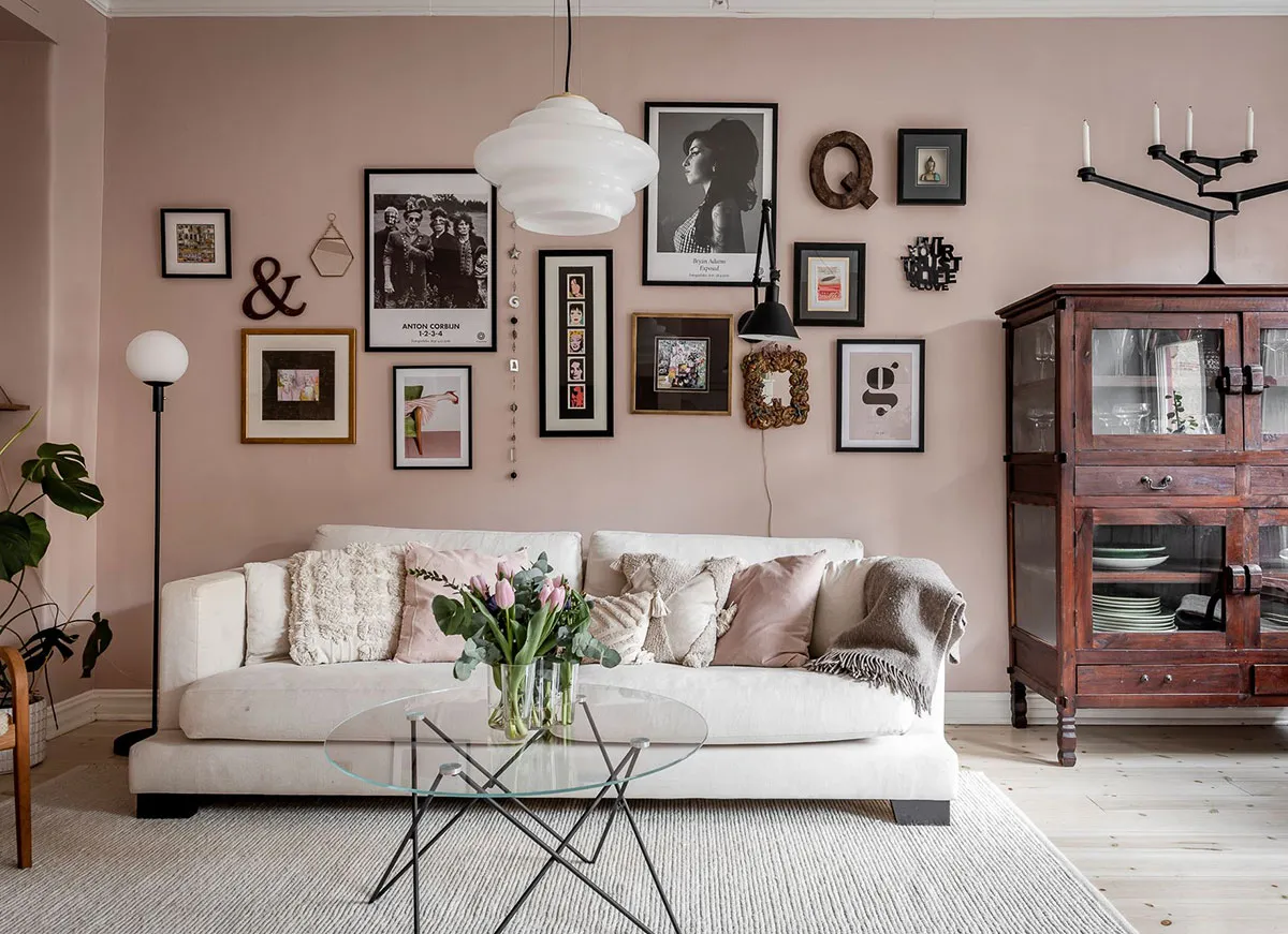 Розовые стены и винтажная витрина: милая квартира в Швеции (60 кв. м)