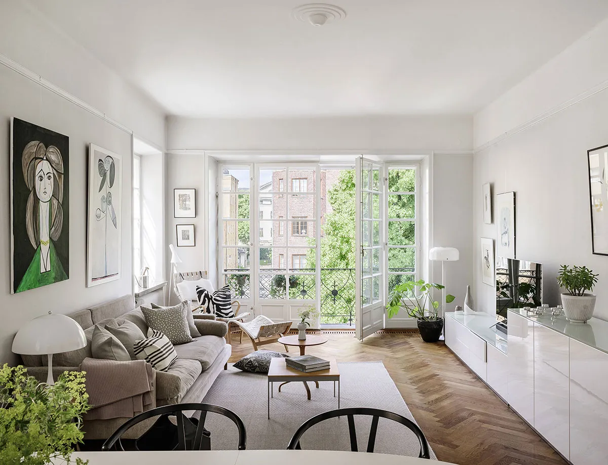 Светлая квартира в Стокгольме с роскошным французским окном