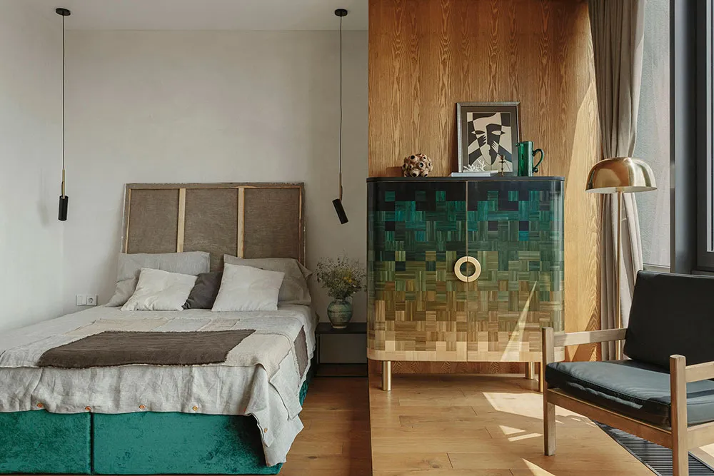 Изумрудные акценты и интересный комод: необычный дизайн небольшой квартиры в Одессе (50 кв. м)