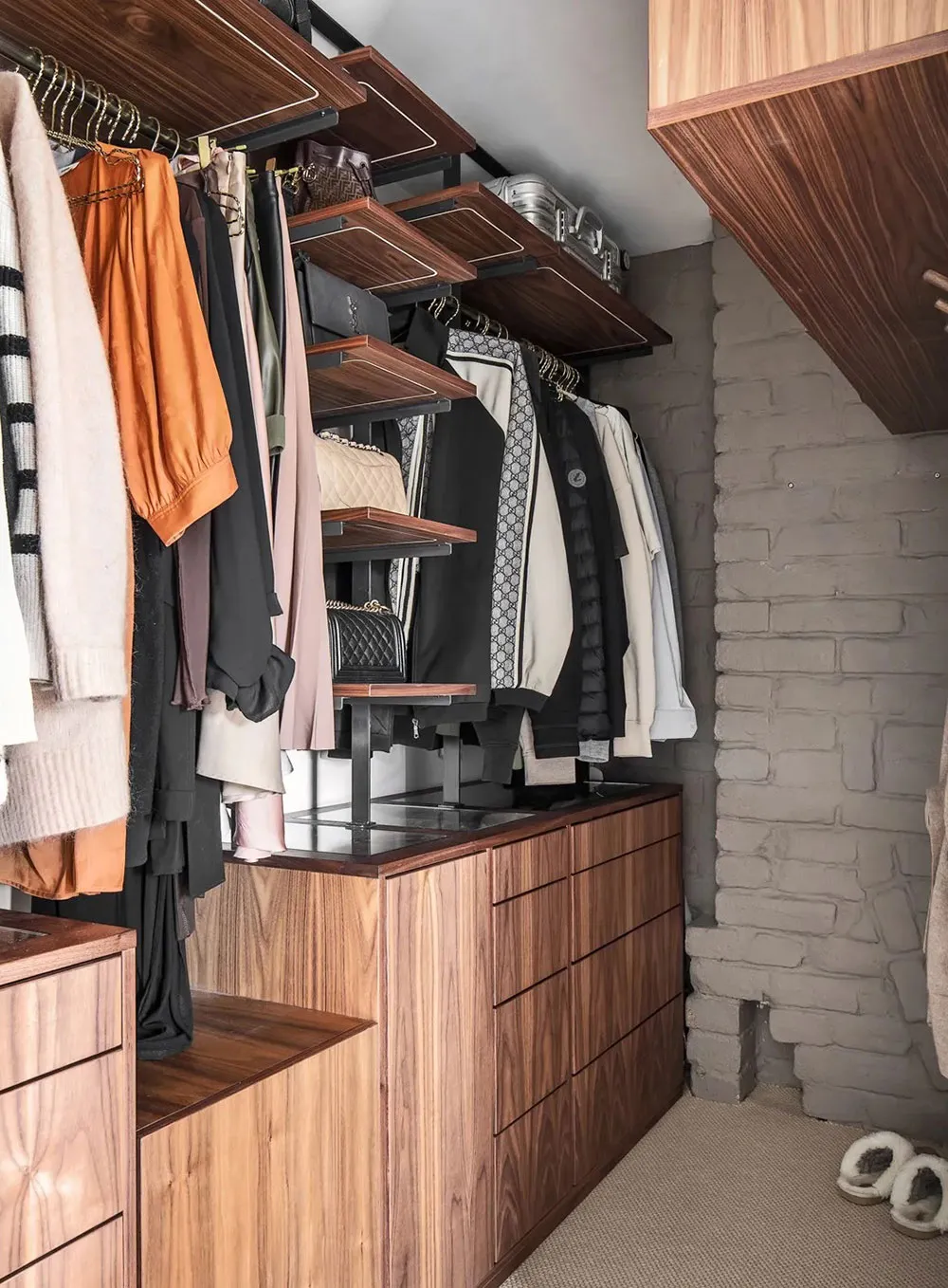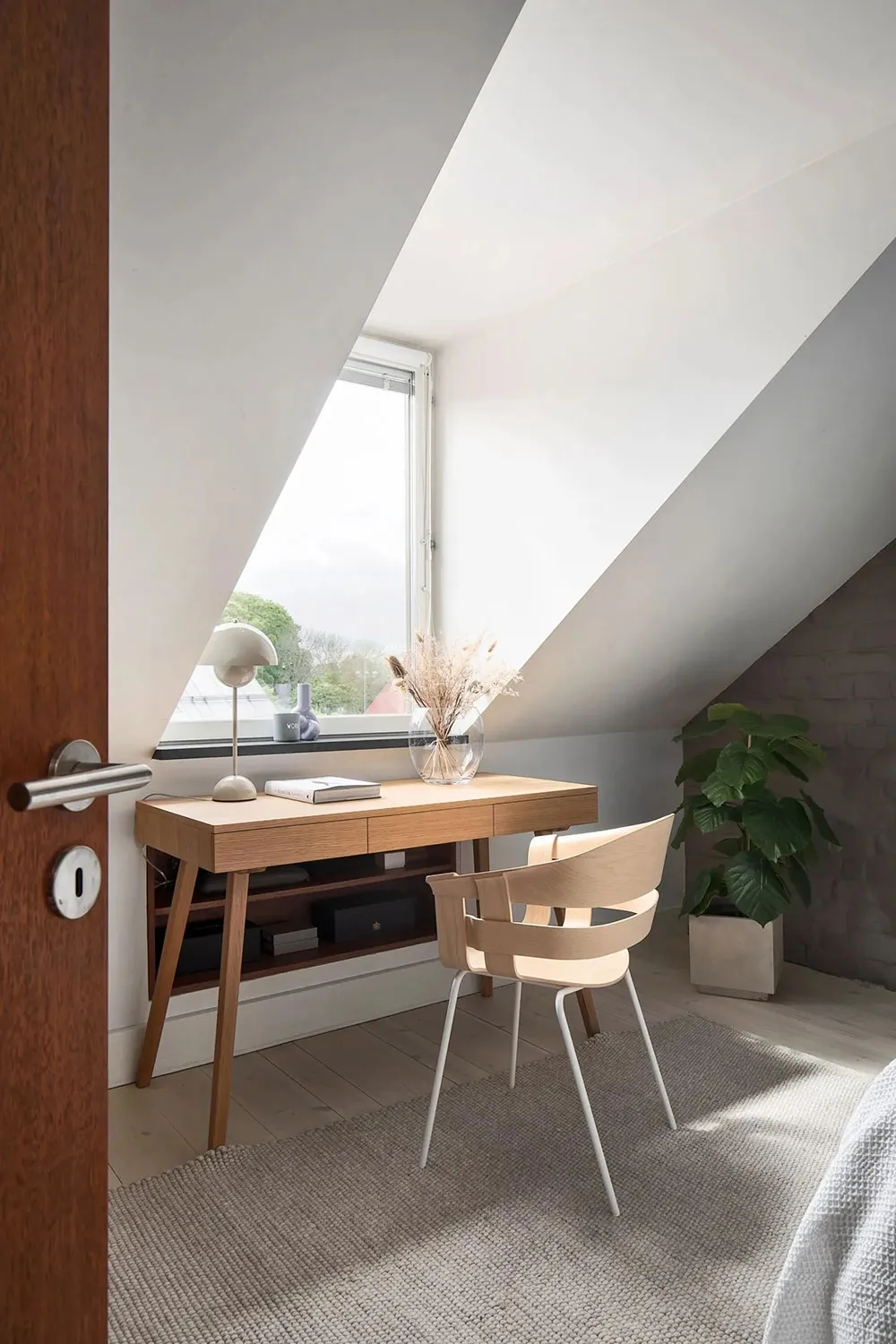 Современная мансарда с оригинальным пространством и спальней под крышей