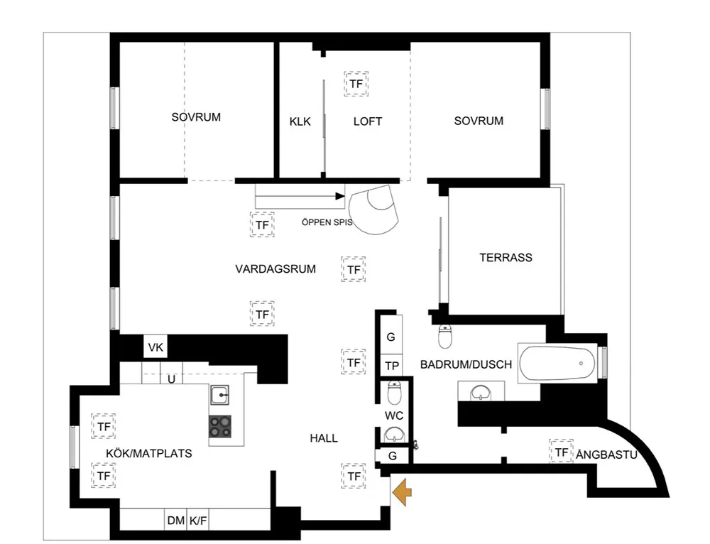 Компактная трехкомнатная квартира в Швеции в монохромных тонах (65 кв. м)