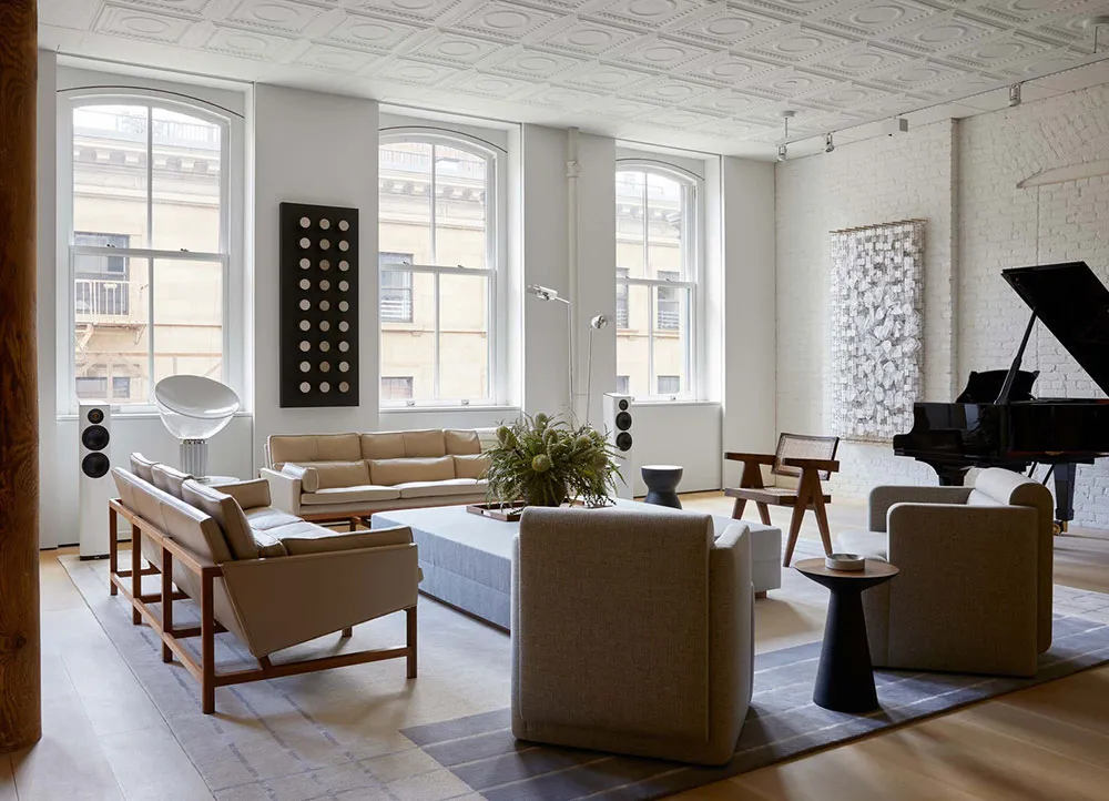 Стильный лофт с необычным потолком для молодого бизнесмена в Нью-Йорке