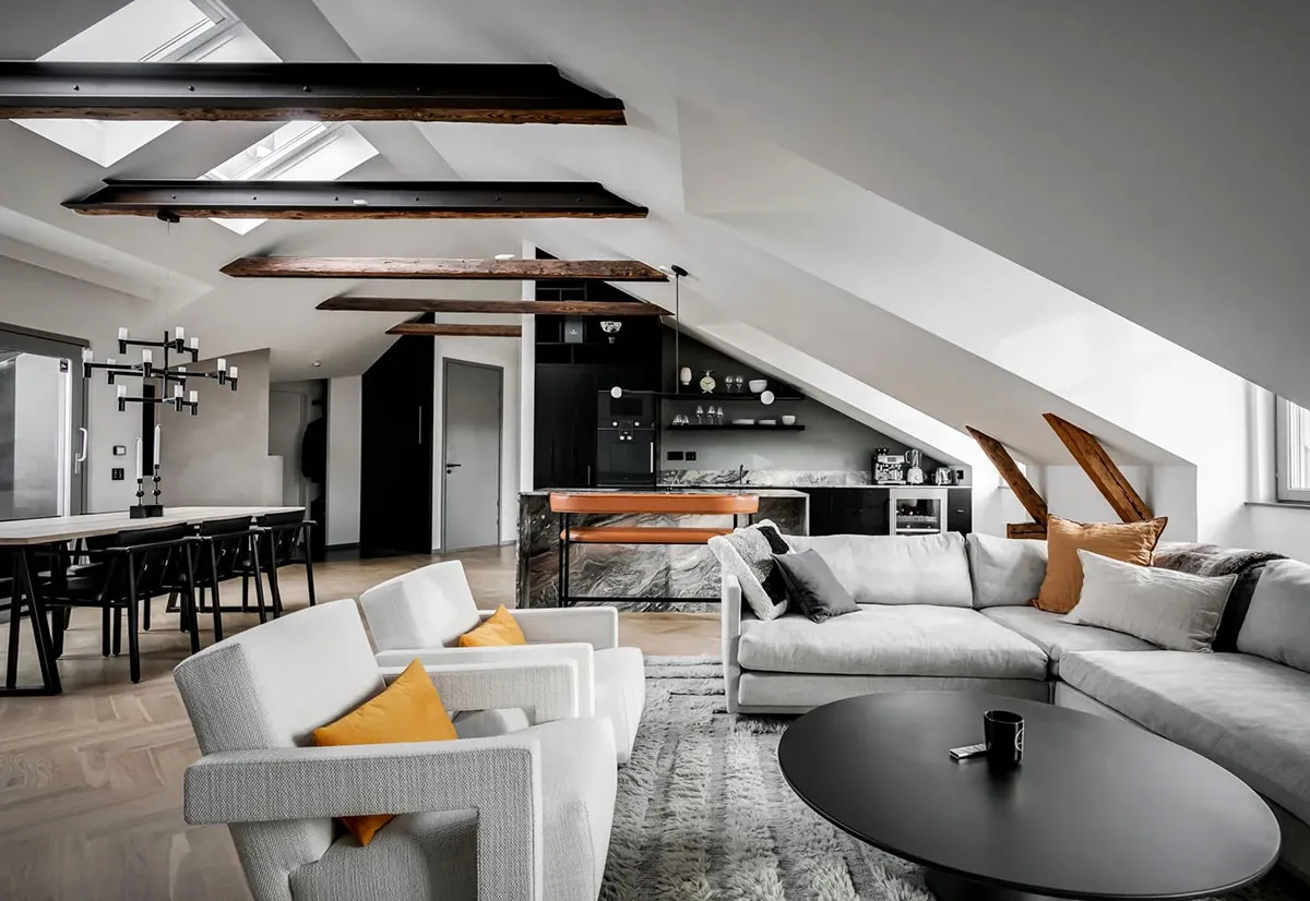 Стильный интерьер просторной мансардной квартиры в Стокгольме