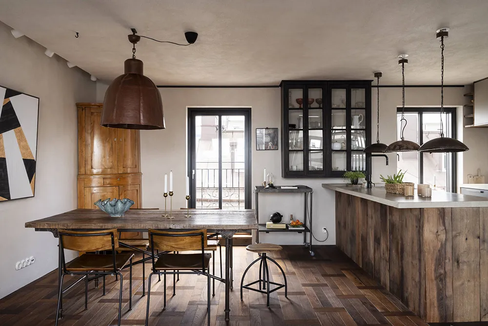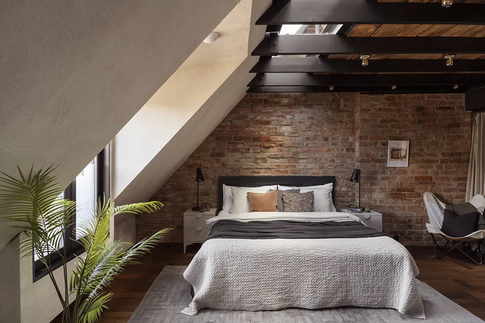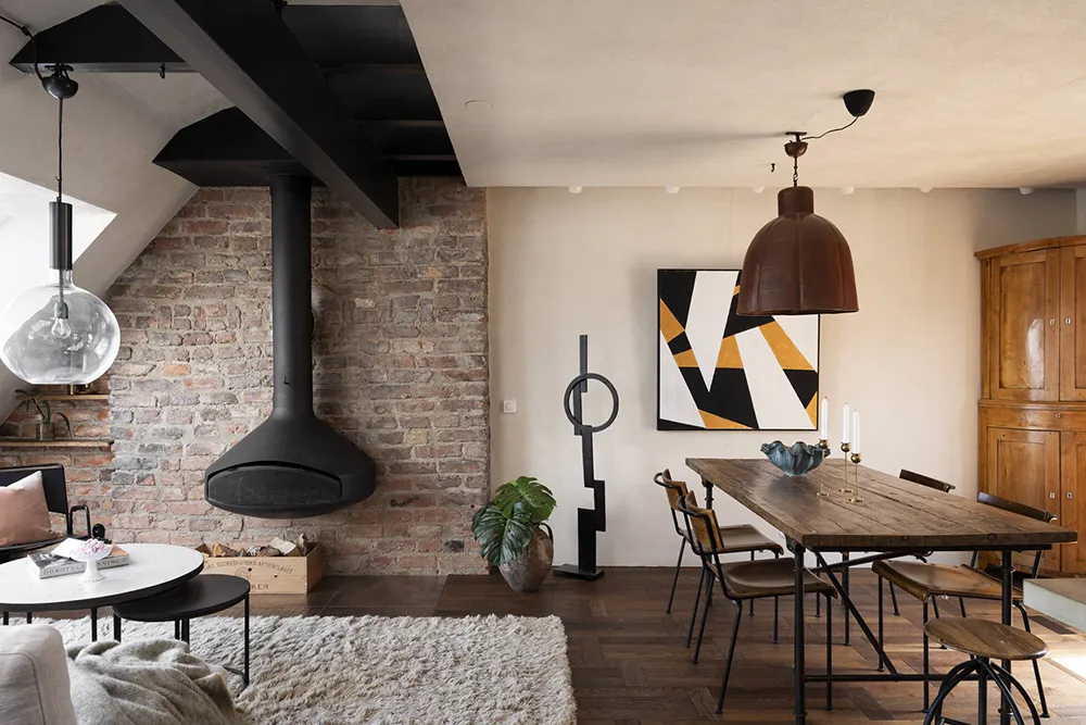 Элементы стиля рустик в дизайне скандинавской квартиры на чердаке