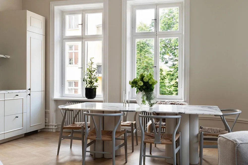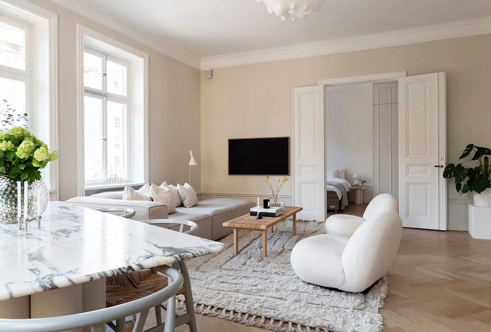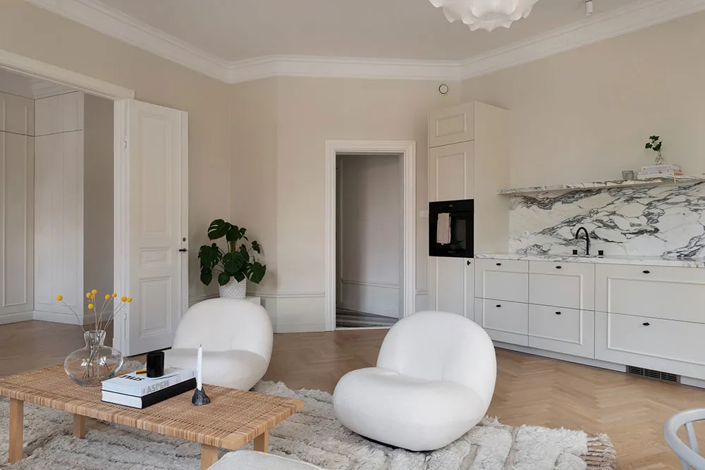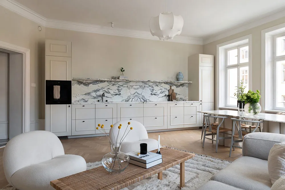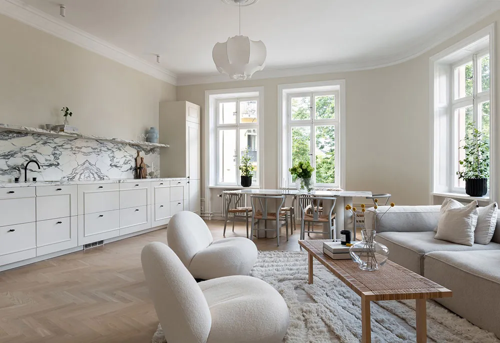 Эта шведская квартира отличается прекрасным пространством: старый дом, большая открытая гостиная, множество окон и высокие потолки.