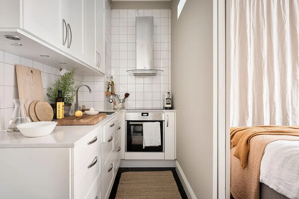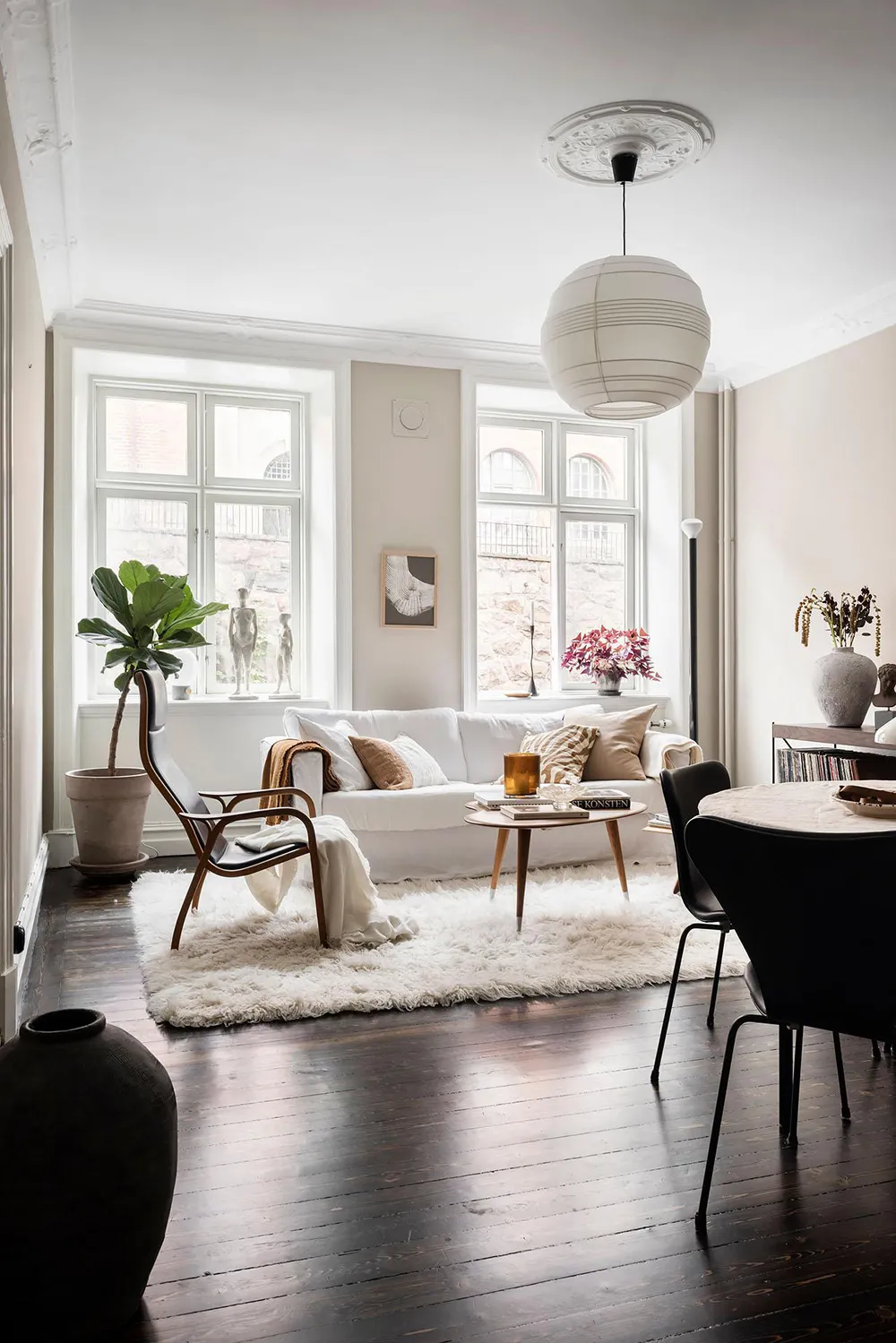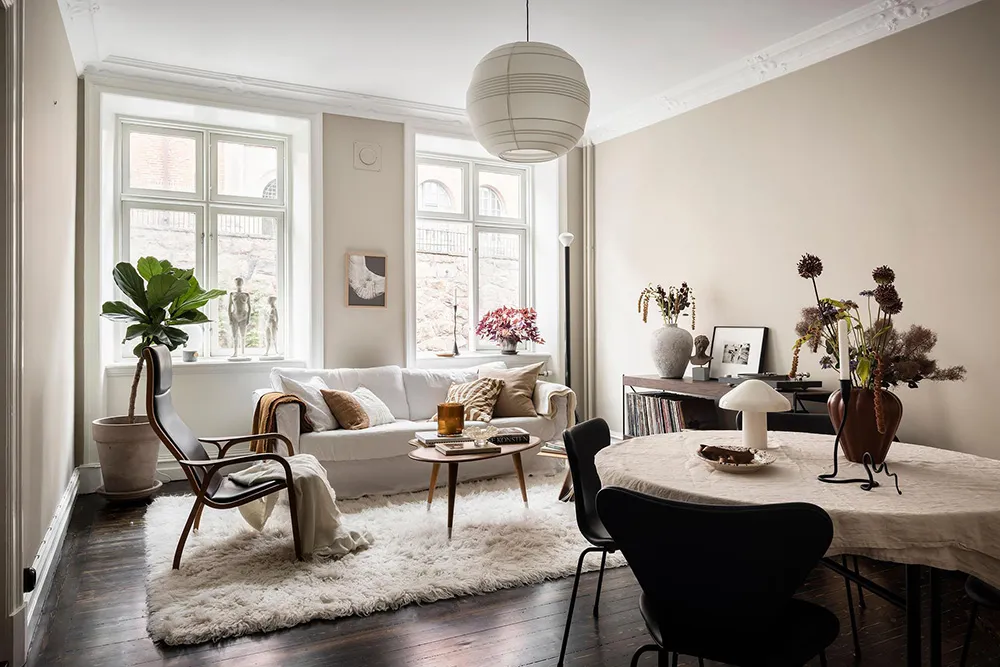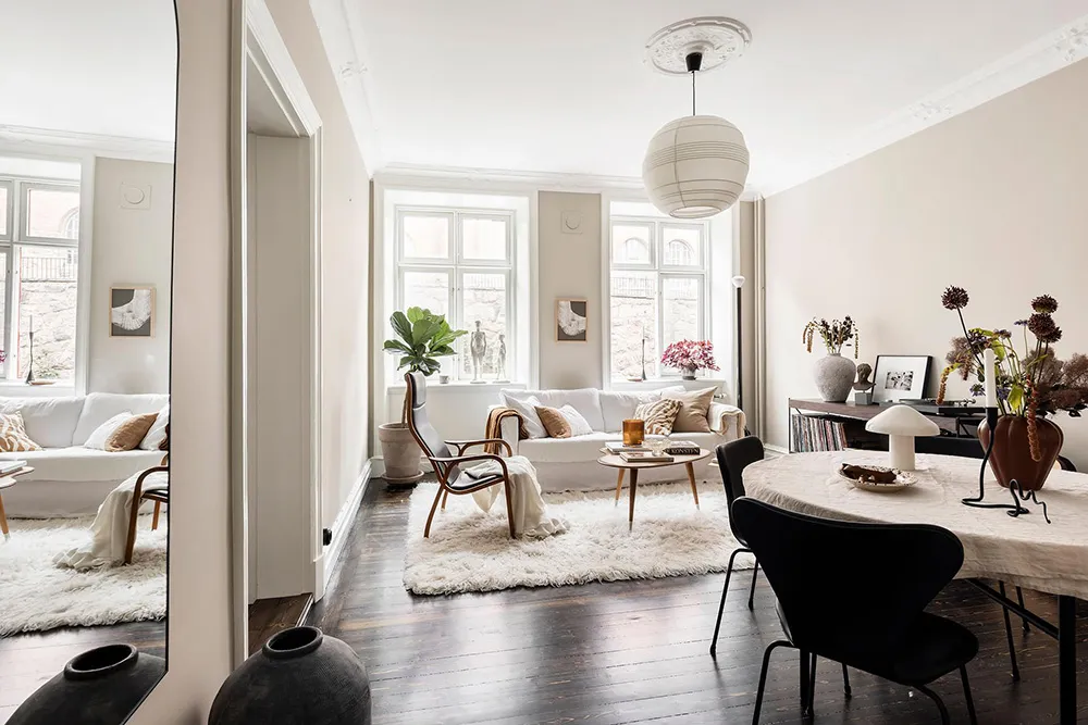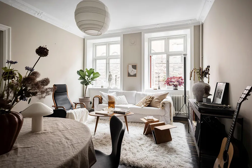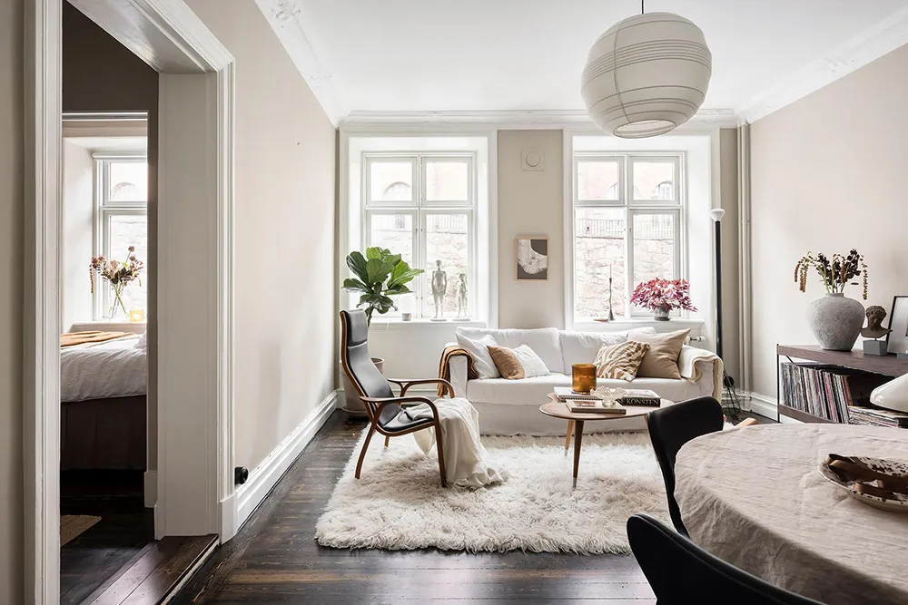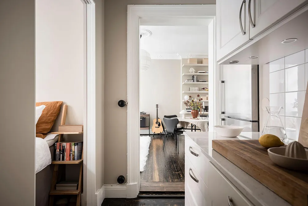 В этой небольшой двухкомнатной квартире в Гетеборге дизайнеры постарались с помощью декора визуально увеличить пространство.