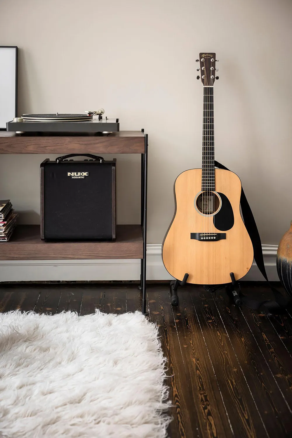 Воздушный скандинавский интерьер с тёмным полом (41 кв. м)