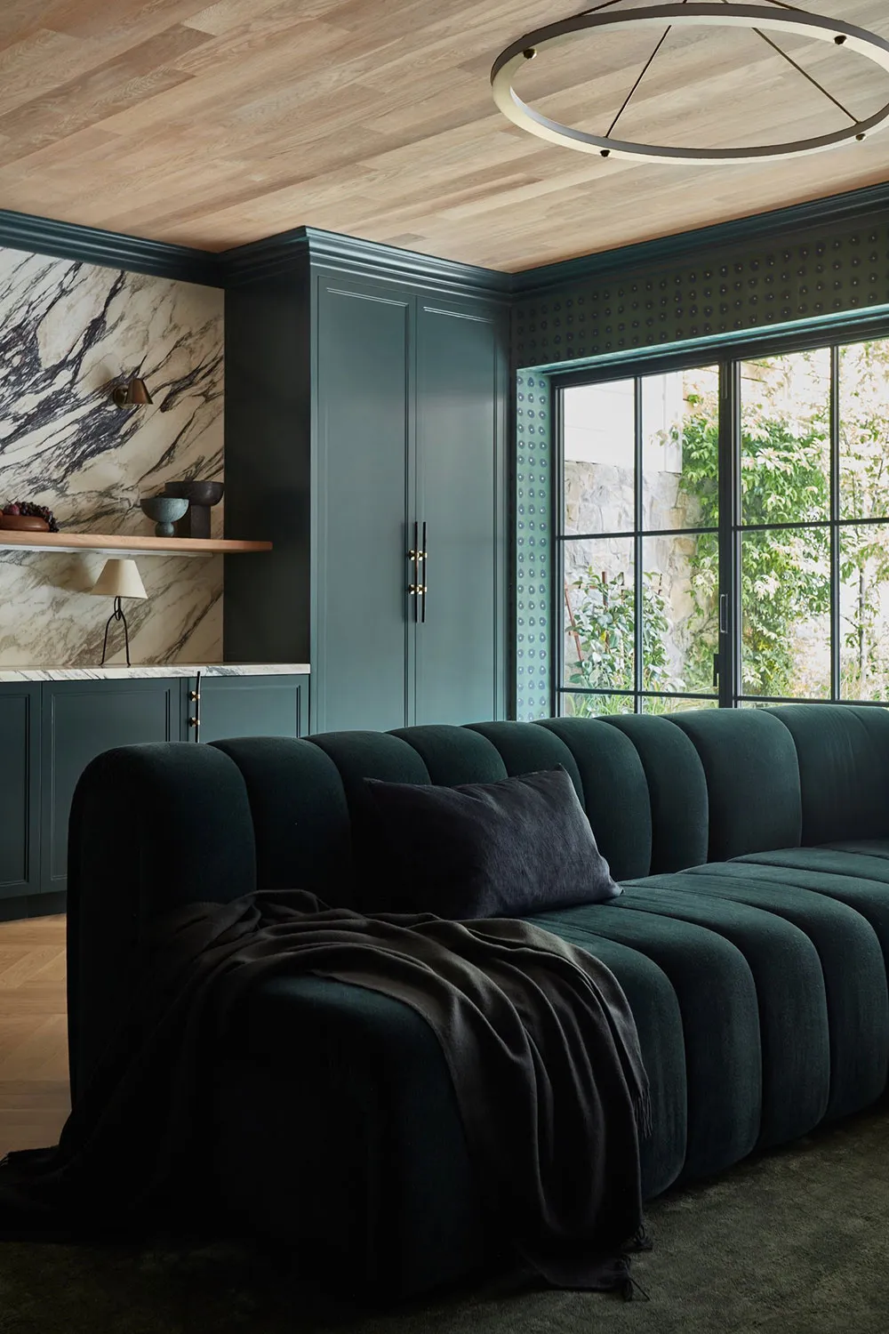 Красивые оттенки зелёного и коричневого в дизайн дома в США