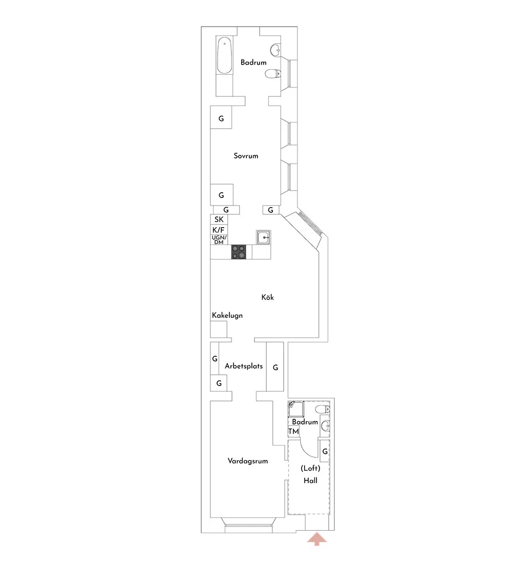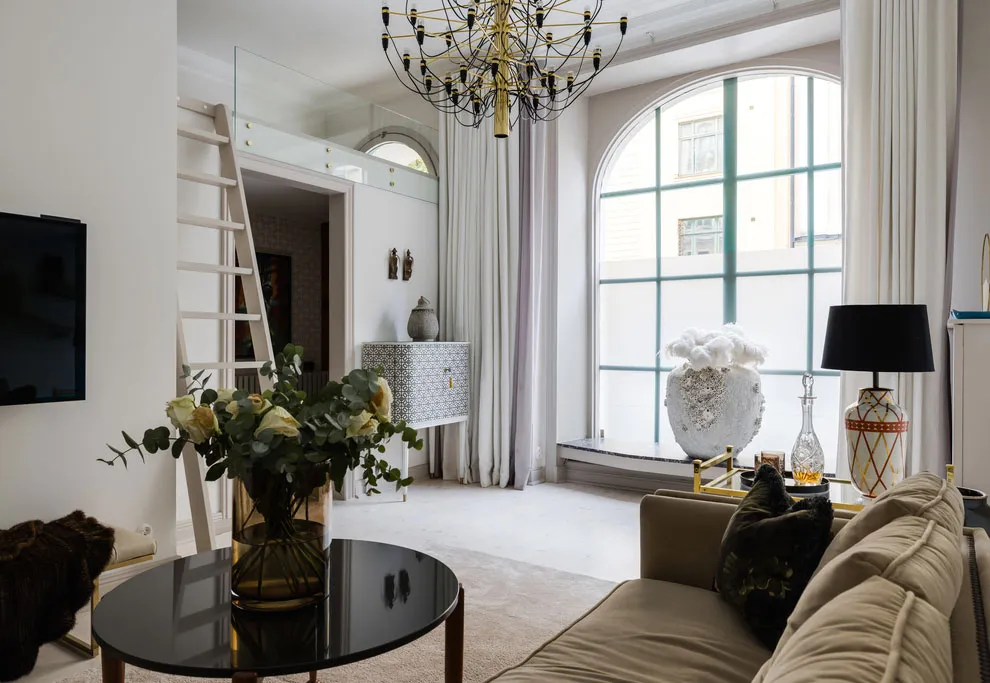 Модная девичья квартира в Стокгольме с антресолью и необычной планировкой (84 кв. м)