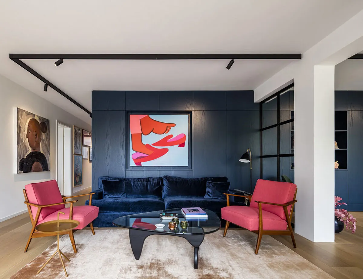 Яркая современная квартира в Гамбурге с тёмно-синим кубом
