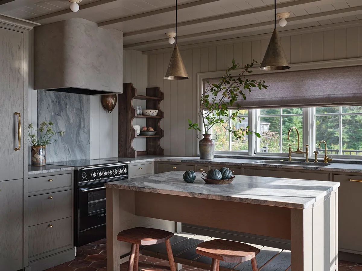 Приятные приглушенные оттенки в интерьерах американской дачи на берегу озера