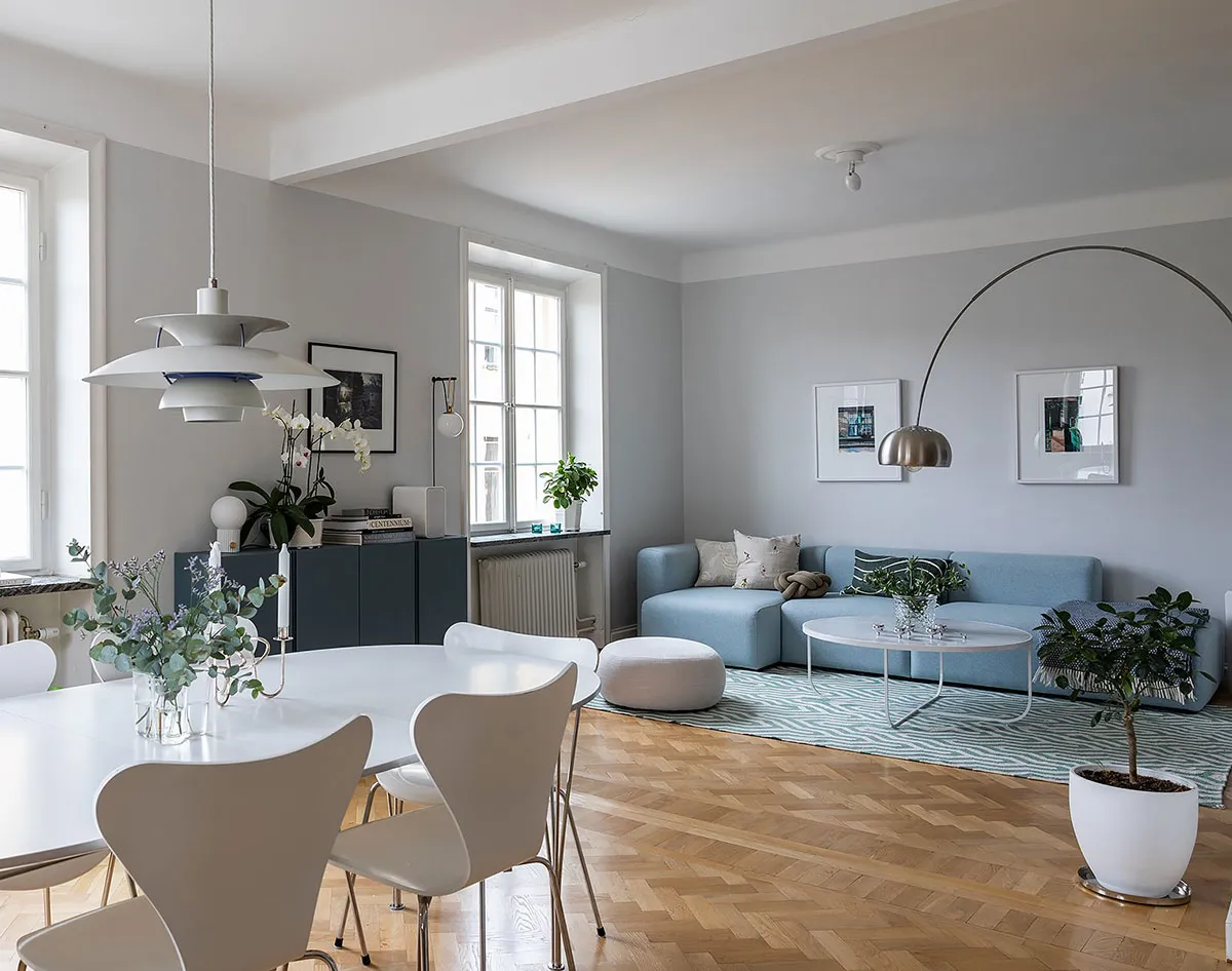 Спокойный и приятный скандинавский интерьер в прохладных тонах (83 кв. м)