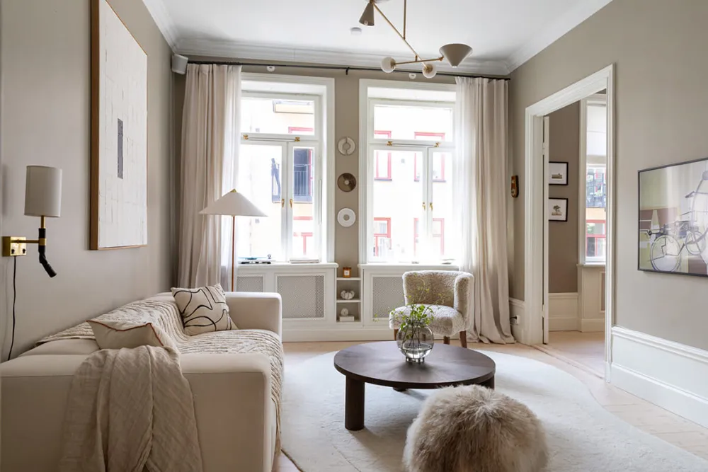 Элегантный современный интерьер в бежевом: квартира в Стокгольме (78 кв. м)