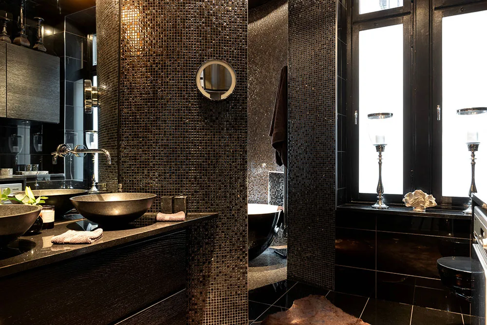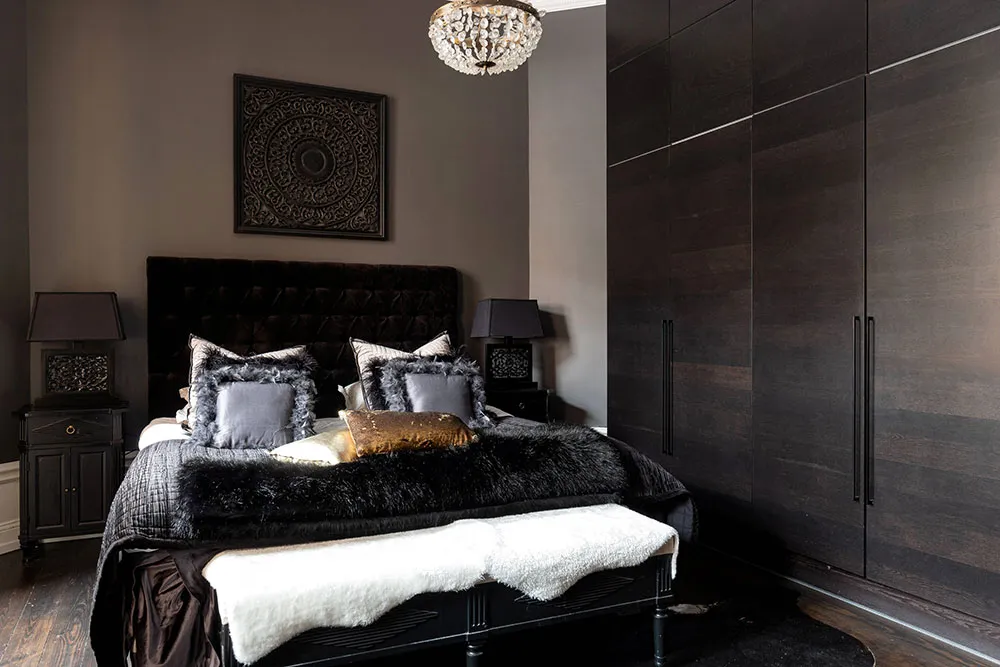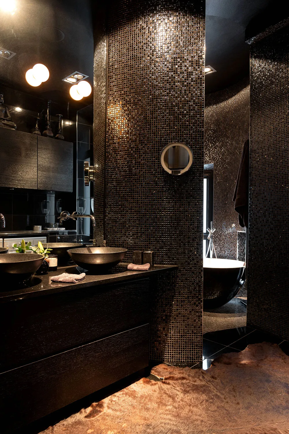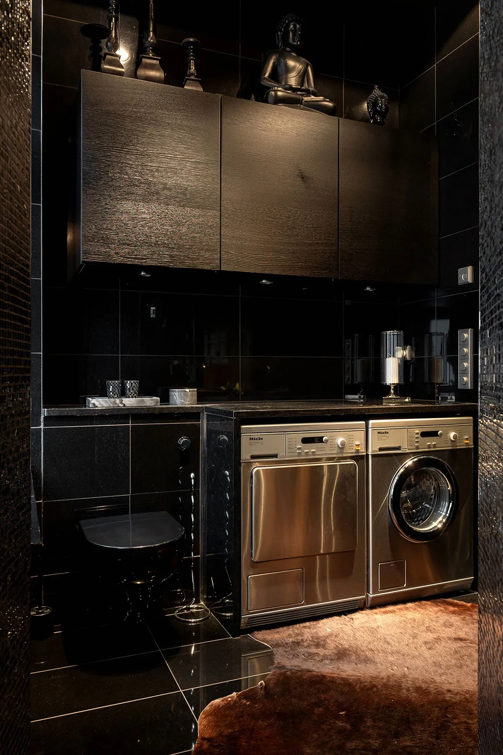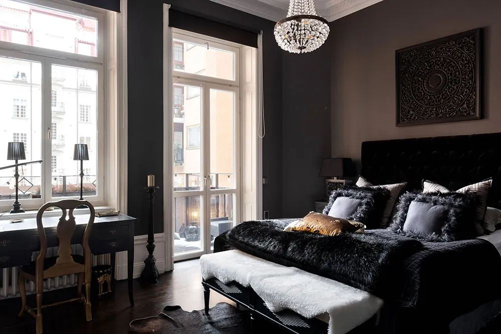 Шведские дизайнеры решили сделать классический интерьер этой квартиры в Стокгольме более современным и эффектным с помощью очень смелой цветовой гаммы — стены и пол буквально во всех комнатах здесь выкрашены в чёрный цвет.