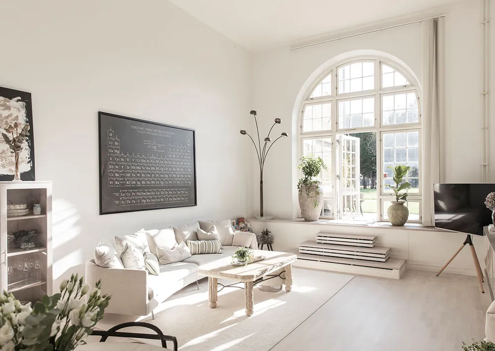 Светлый лофт в Хелсингборге с великолепным арочным окном